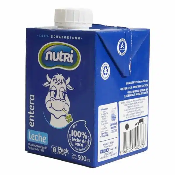 • La Leche Entera Nutri es la indicada para toda la familia, en especial para los más pequeños que se encuentran en su etapa de crecimiento y desarrollo de los huesos y dientes