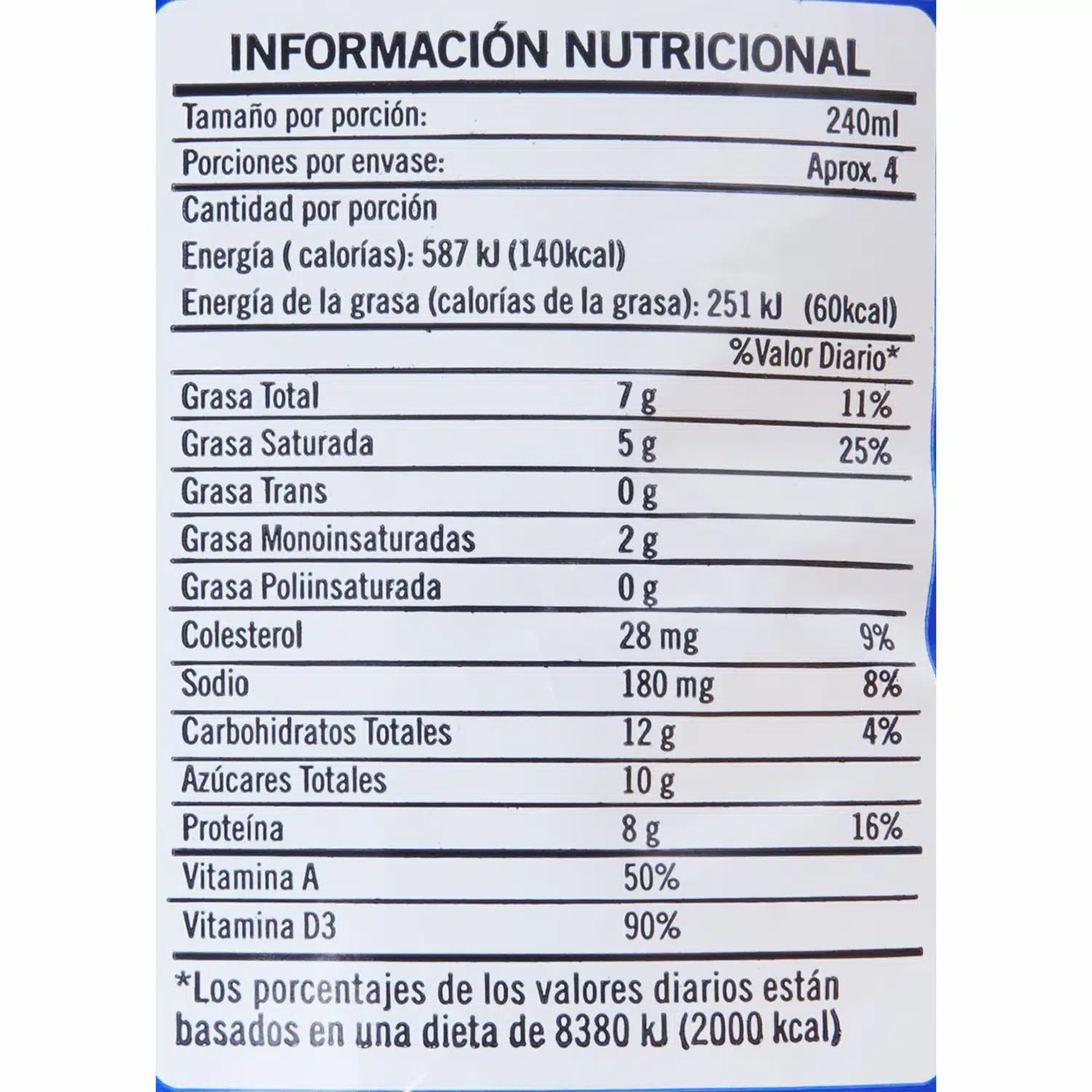 Contenido vitamínico, A y D Contiene lactosa y es el alimento ideal para niños y adultos