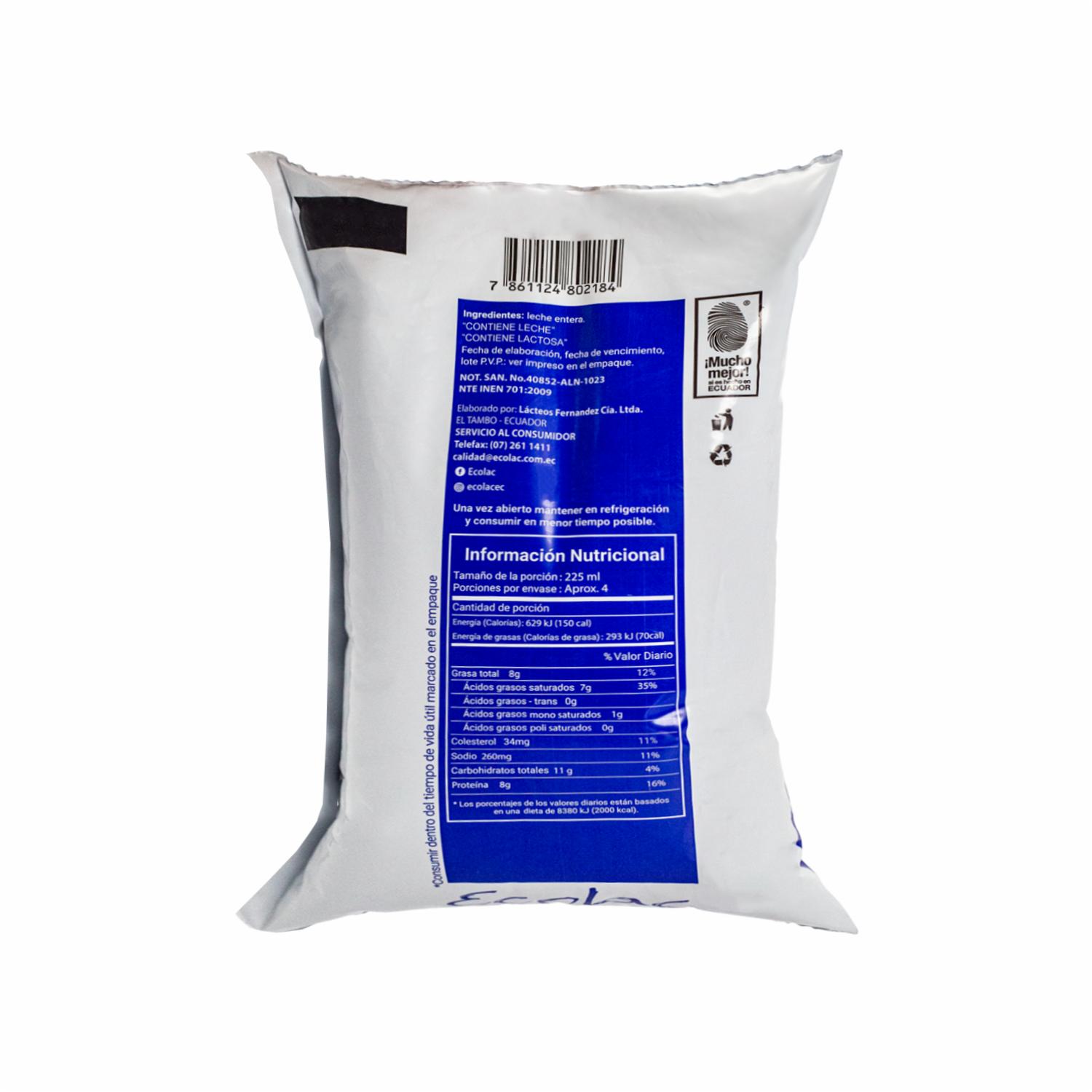 Leche Entera UHT ECOLAC 1000 Ml