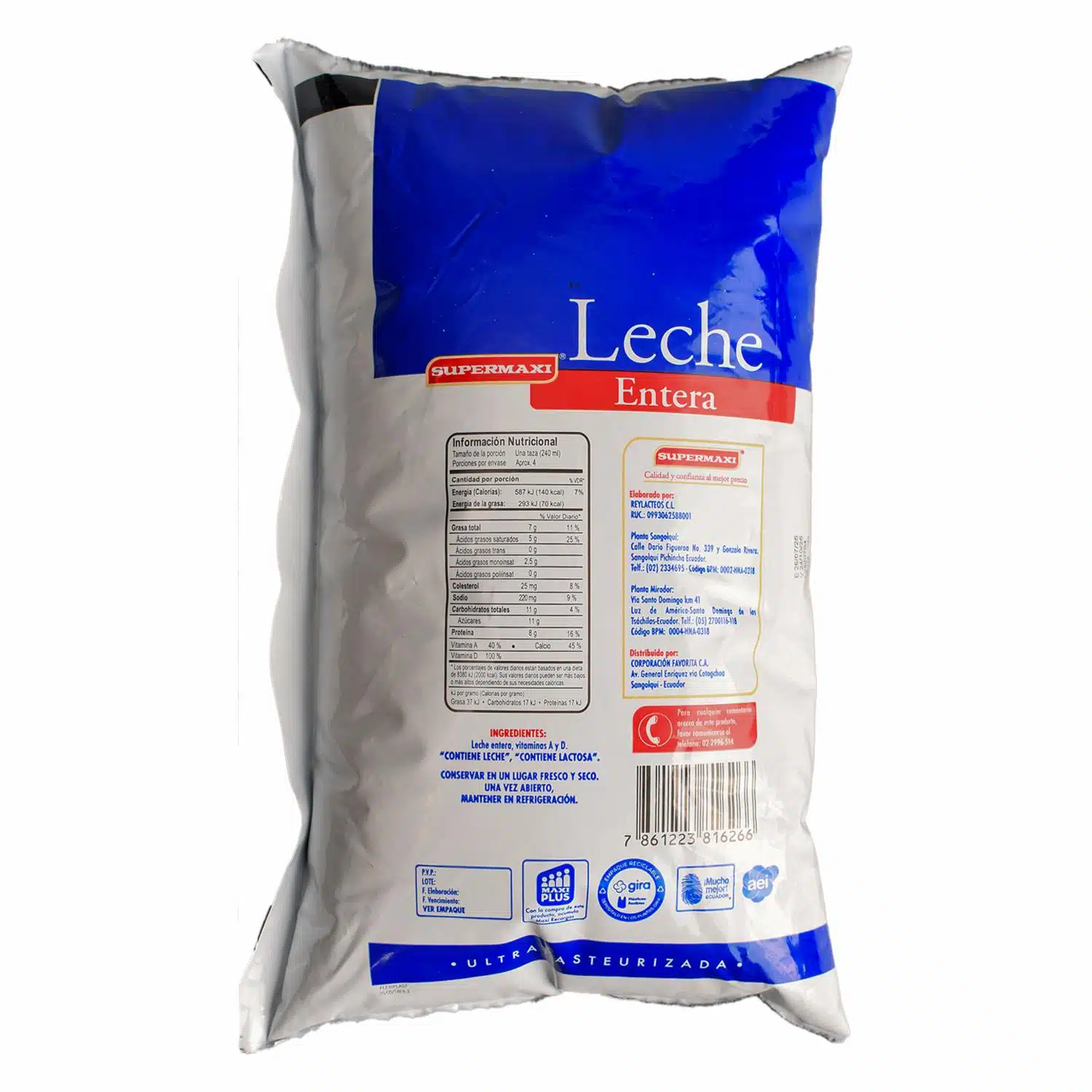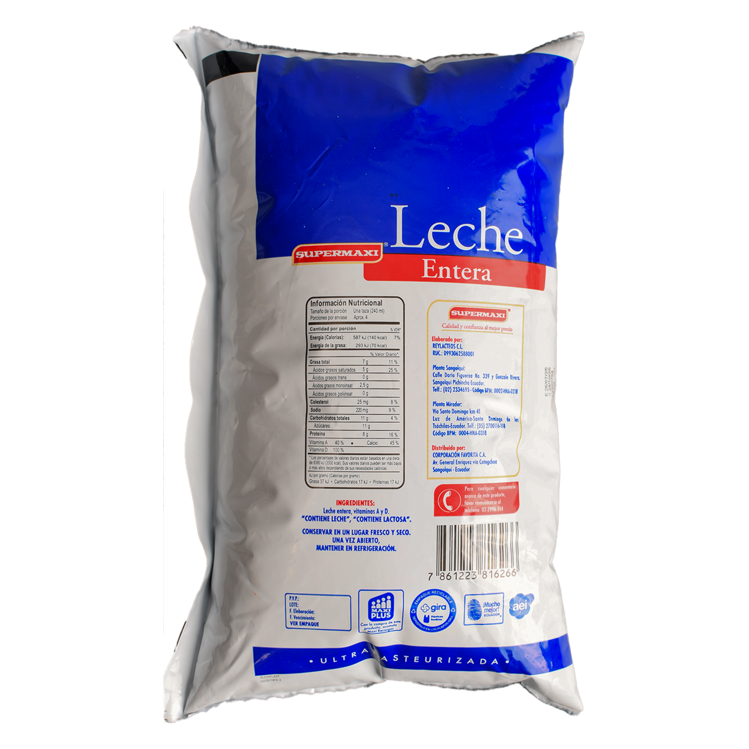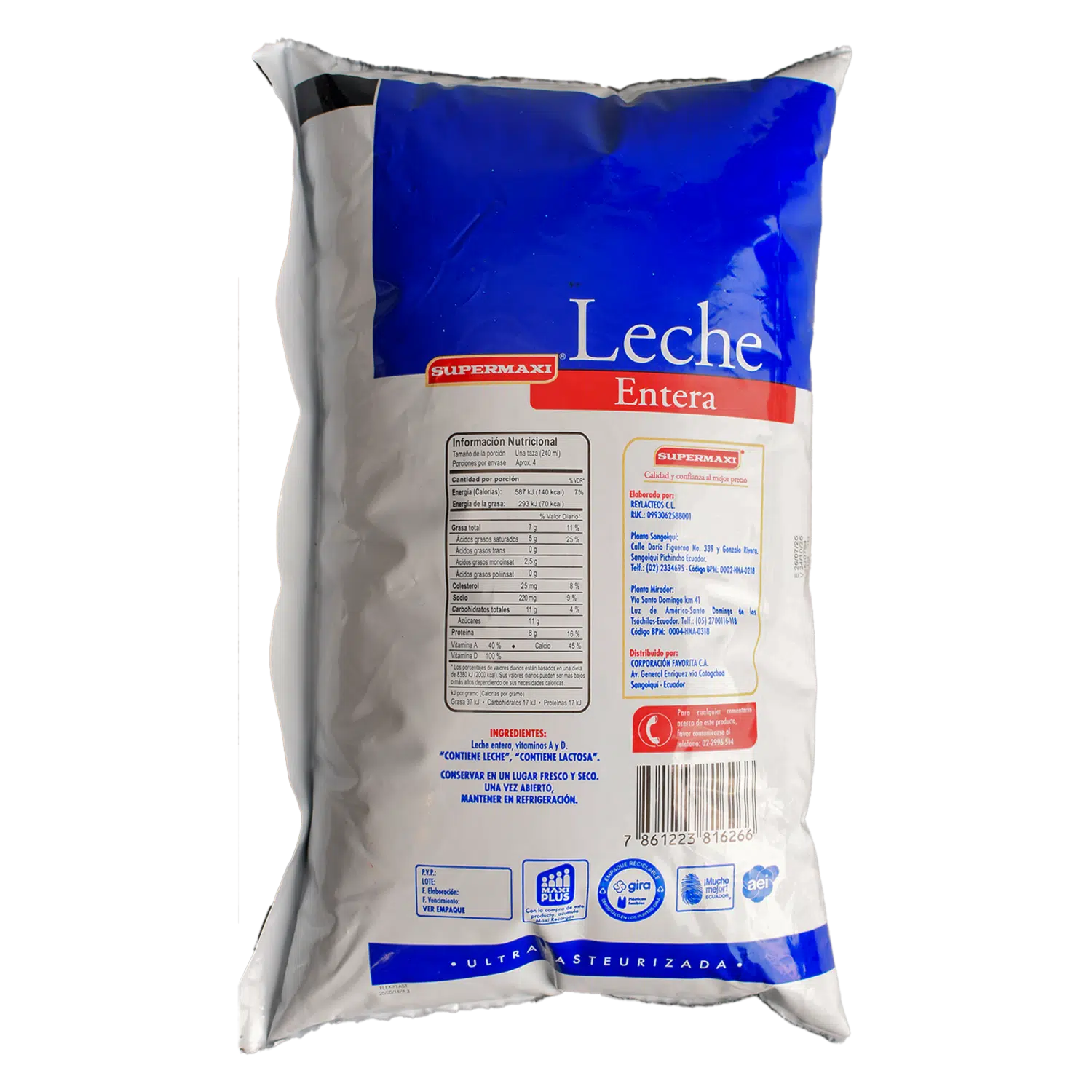 Leche Entera Ultrapasteurizada SUPERMAXI 1000 Ml – SUPERMAXI. Disponible en nuestros locales. Precio y stock pueden variar según la tienda.