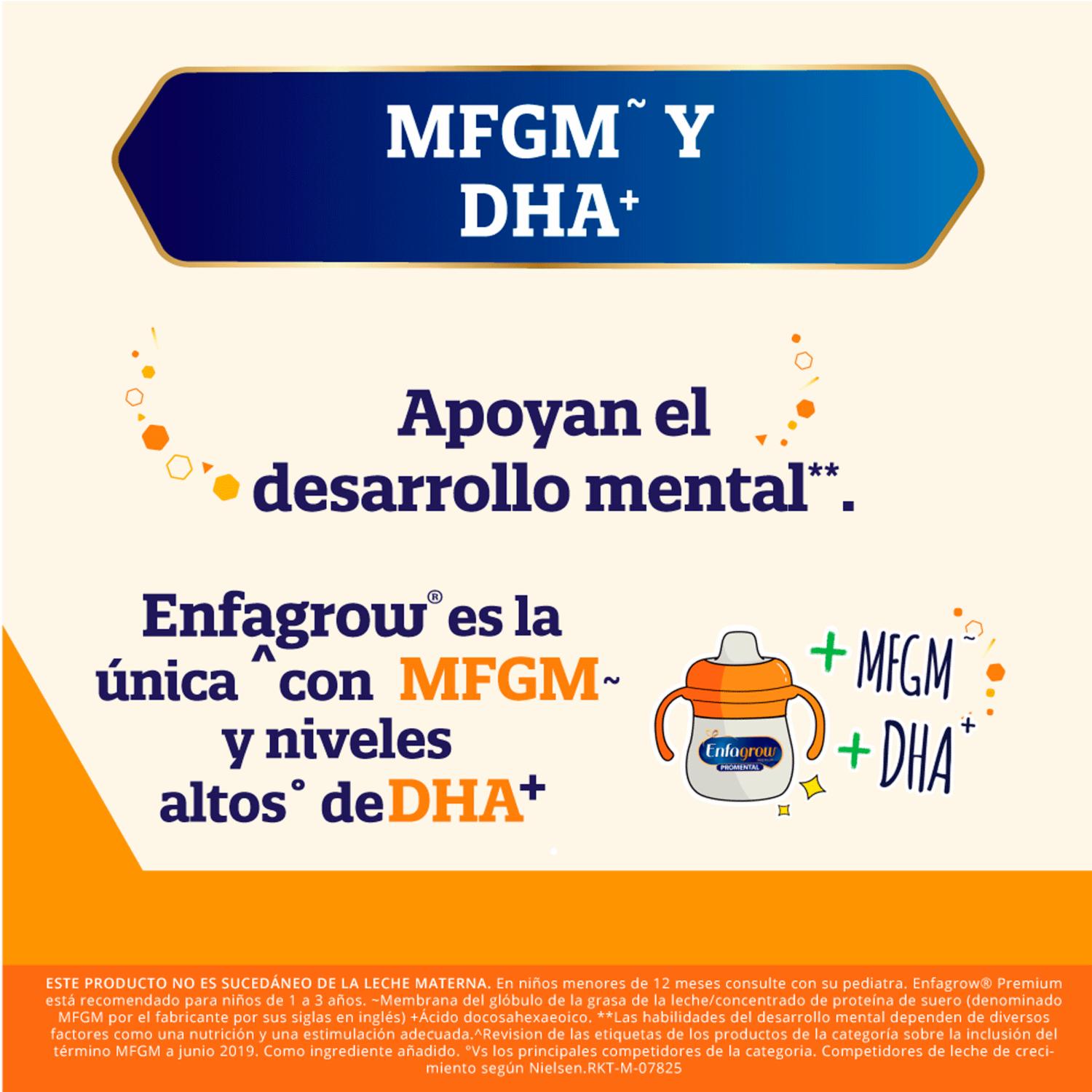 - Esta Fórmula De Crecimiento Enfagrow Está Enriquecida Con Dha - Mfgm, Un Ácido Graso Omega-3 Esencial Para El Desarrollo Cerebral Y Visual. También Cuenta Con Prebióticos(pdx Y Gos) Y Probióticos Que Ayudan A Mantener Un Sistema Digestivo Saludable Ya Fortalecer El Sistema Impermeable De Tu Hijo