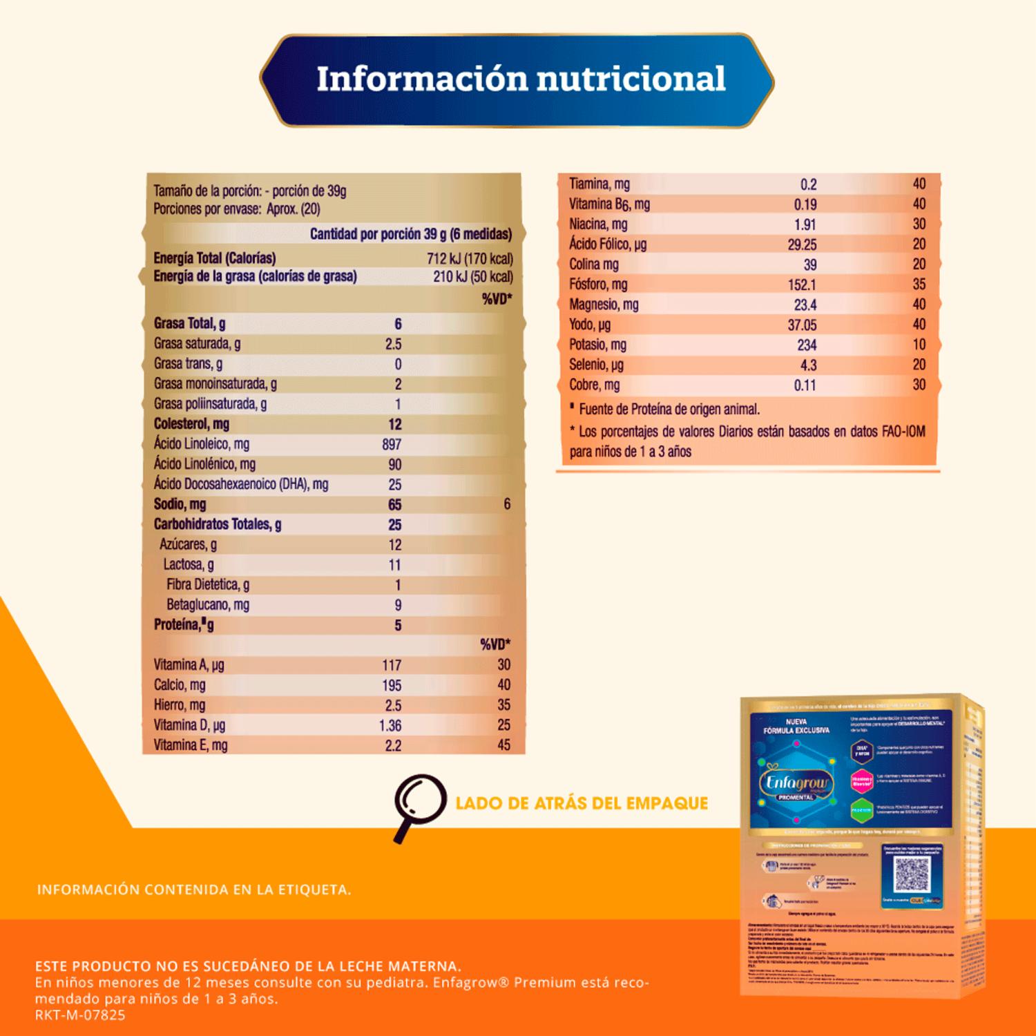 - Incluye Vitaminas Y Minerales Clave Como Hierro, Calcio Y Zinc, Que Son Fundamentales Para El Correcto Crecimiento Y Desarrollo Físico De Los Niños En Esta Etapa. Adicionalmente, La Fórmula Contiene Una Mezcla Equilibrada De Proteínas De Alta Calidad, Carbohidratos Y Grasas Saludables Que Aportan La Energía Necesaria Para Las Actividades Cotidianas Y El Crecimiento De Los Niños. "este Producto No Es Sucedáneo De La Leche Materna"