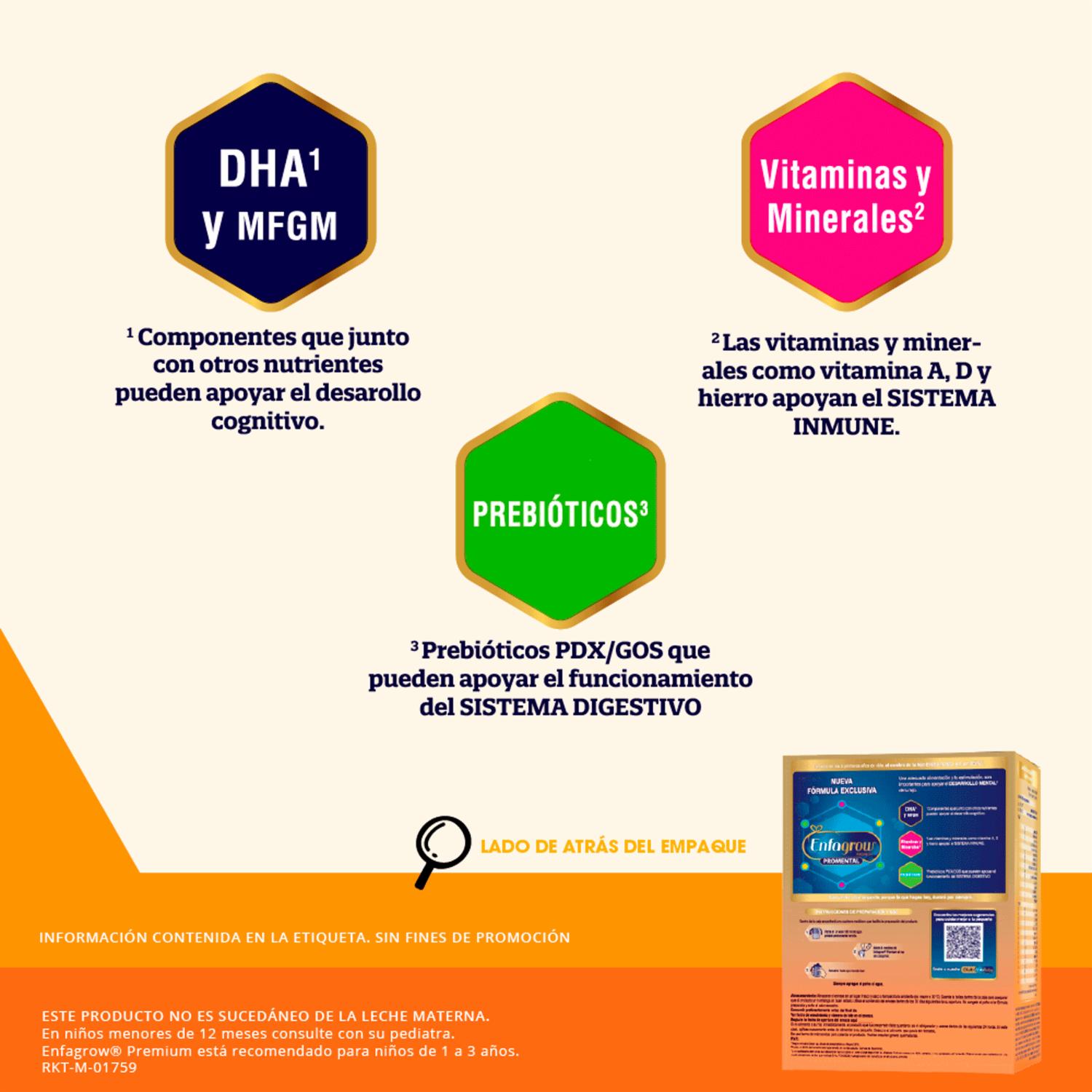 - Está Enriquecido Con Dha - Mfgm, Un Ácido Graso Omega-3 Que Es Crucial Para El Desarrollo Cerebral Y Visual, Y Con Prebióticos(pdx Y Gos) Y Probióticos Que Promueven La Salud Digestiva Y Fortalecen El Sistema Impermeable