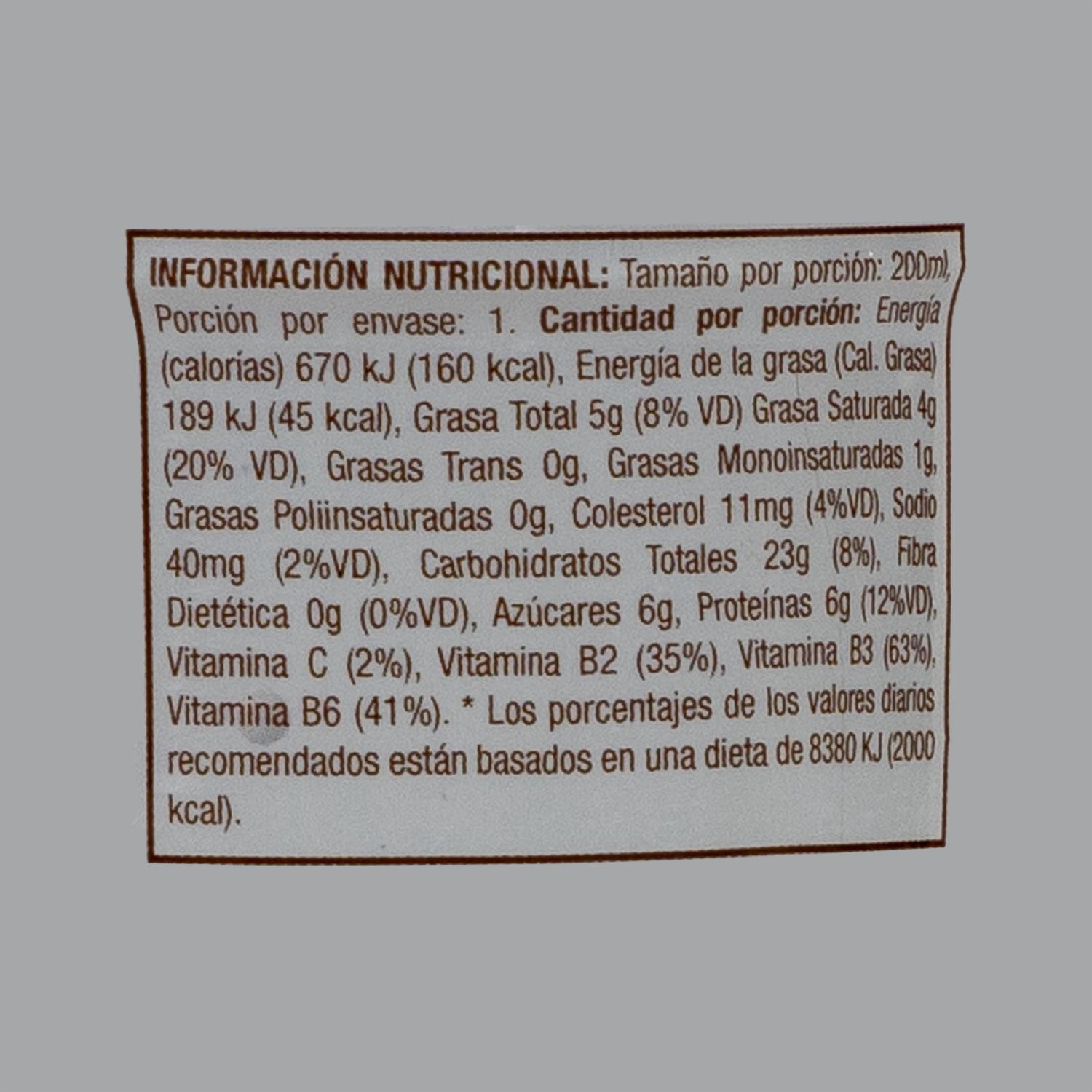 Contiene leche, contiene lactosa. Contiene edulcorante no calórico. Con mezcla de vitaminas. Agitar antes de consumir. No debe ser utilizado como sucedáneo de la leche materna, ni como alimento de niños menores a 24 meses de edad. Conservar en un ambiente fresco y seco. Una vez abierto mantener en refrigeración