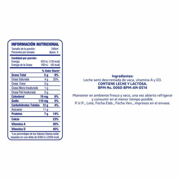 La Leche Semidescremada contiene un 50% menos de grasa y es una excelente Fuente de Calcio