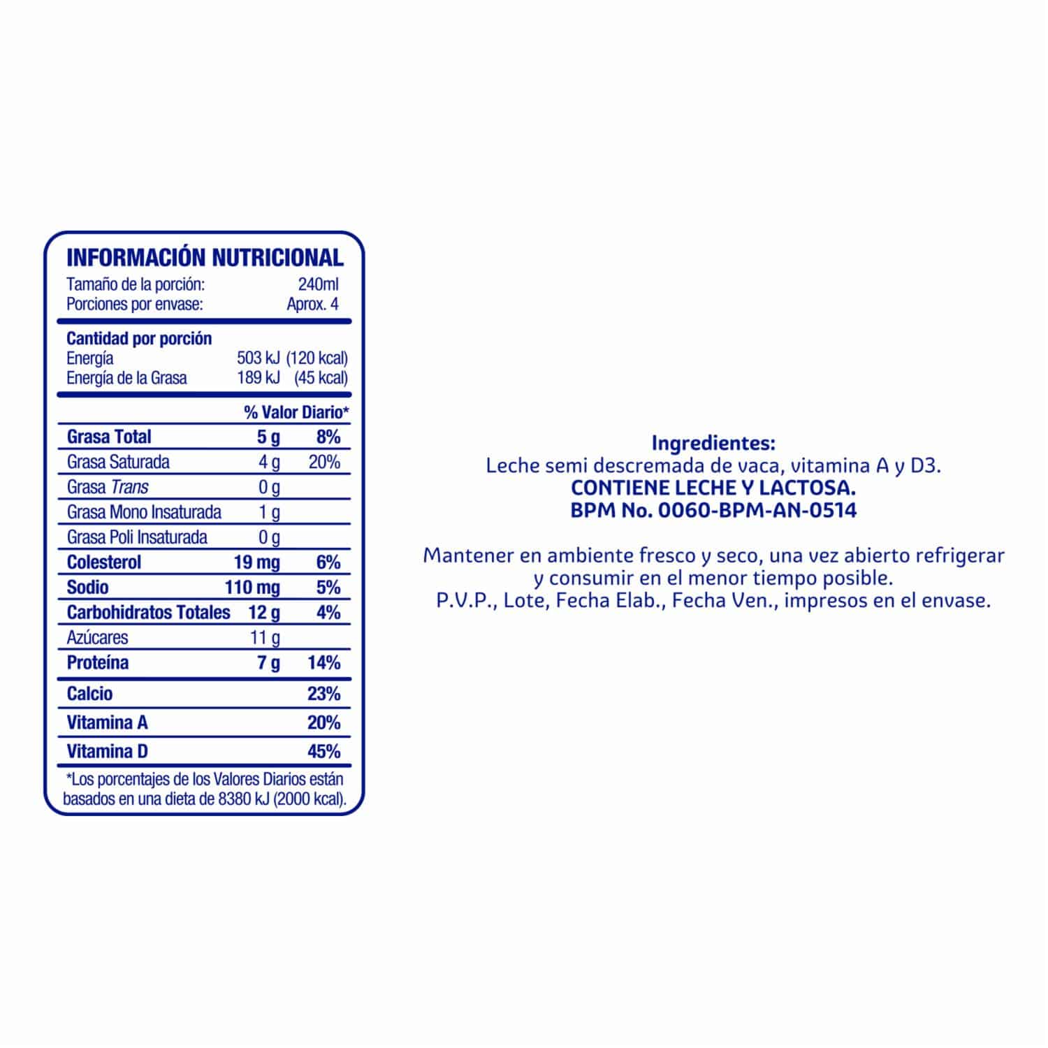 Leche Semidescremada 36% Menos Grasa Sin Suero Fuente De Calcio MIRAFLORES 6 Fundas X 900 Ml – MIRAFLORES. Disponible en nuestros locales. Precio y stock pueden variar según la tienda.