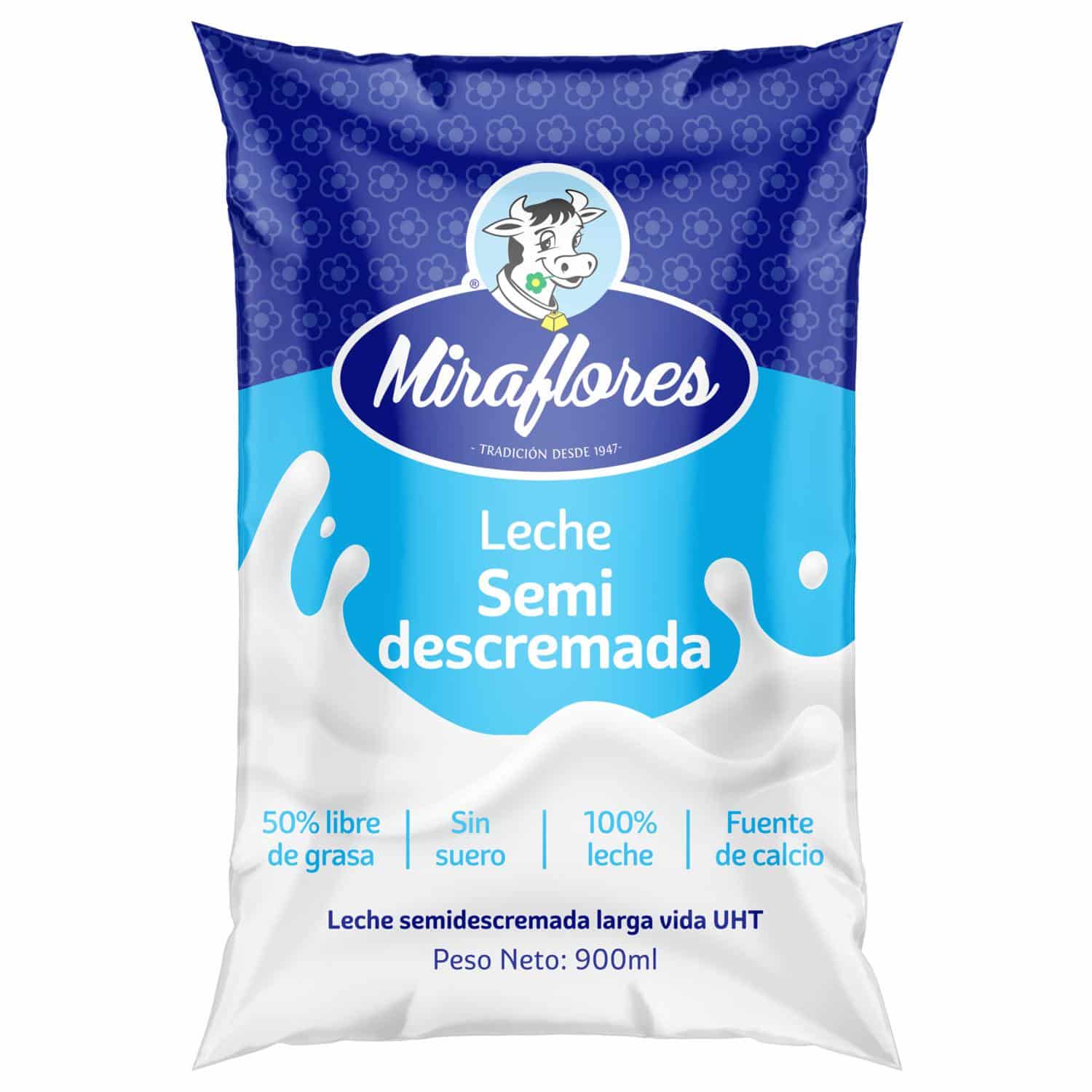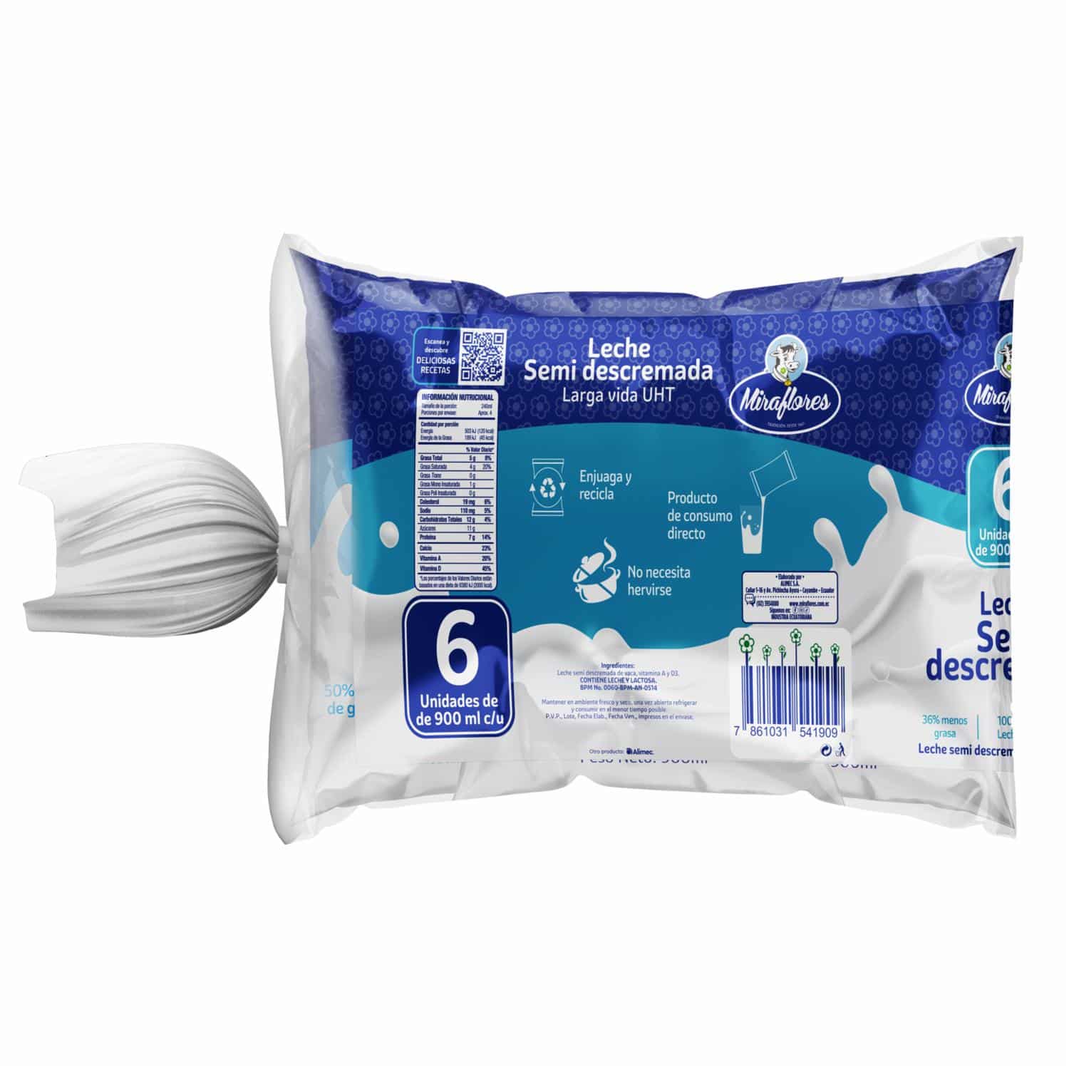 Leche Semidescremada 36% Menos Grasa Sin Suero Fuente De Calcio MIRAFLORES 6 Fundas X 900 Ml