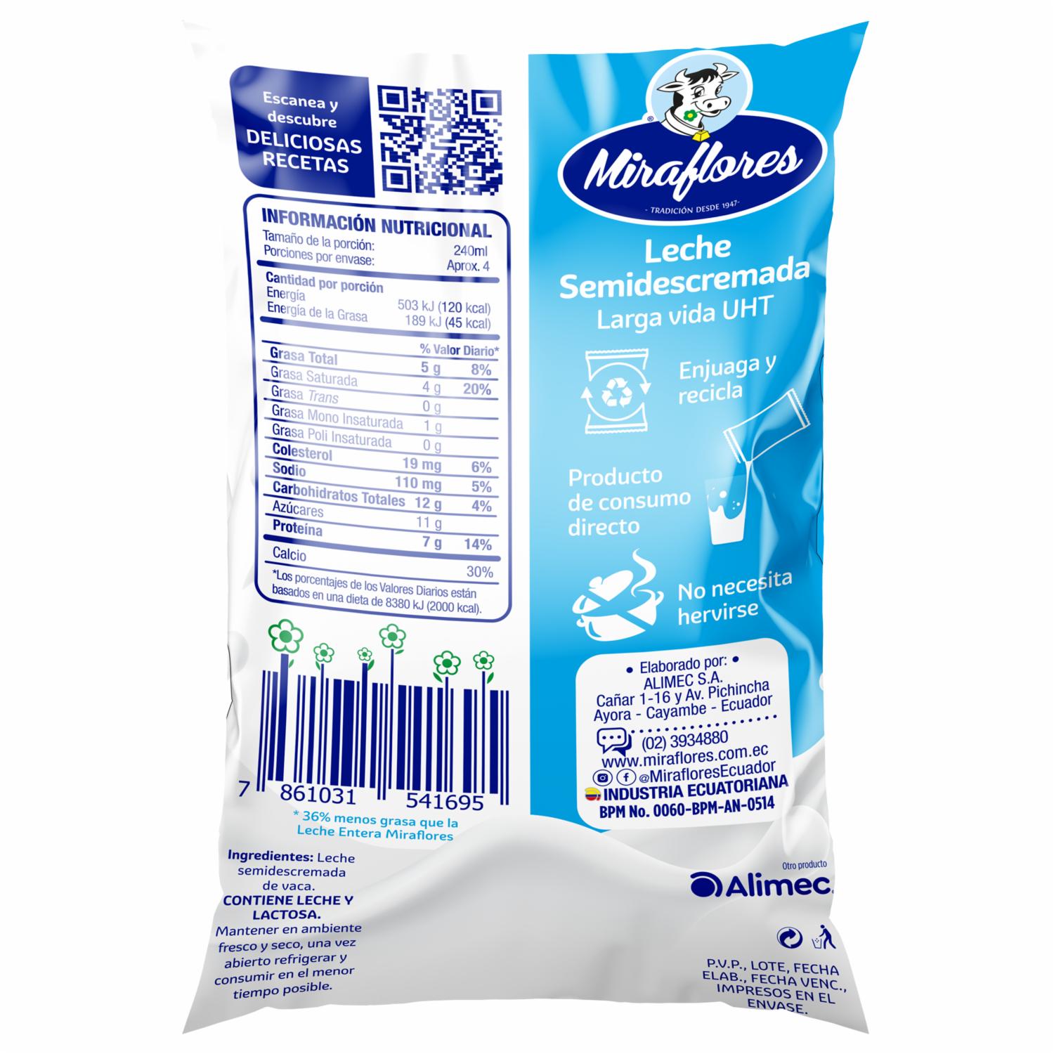 Leche Semidescremada 50% Libre De Grasa Sin Suero Fuente De Calcio MIRAFLORES 900 Ml