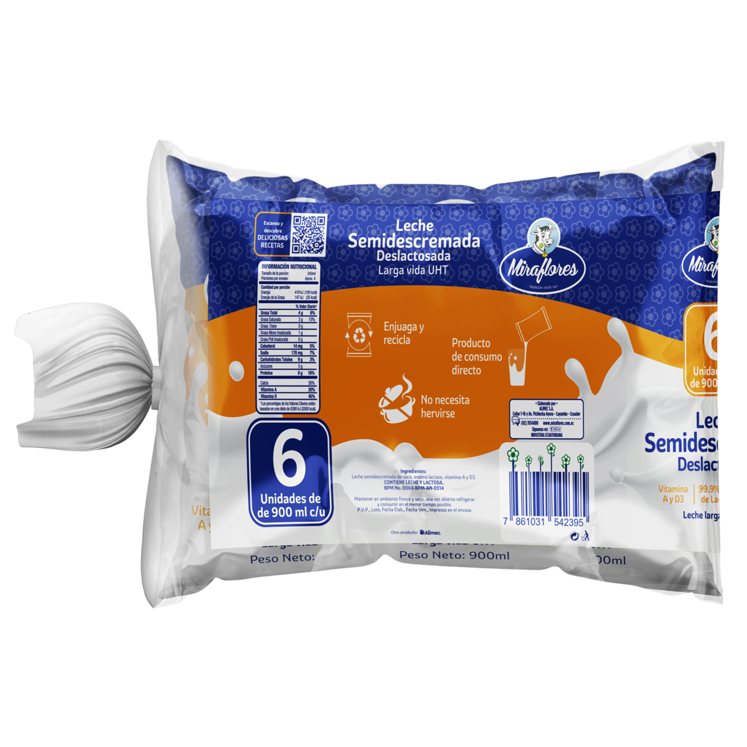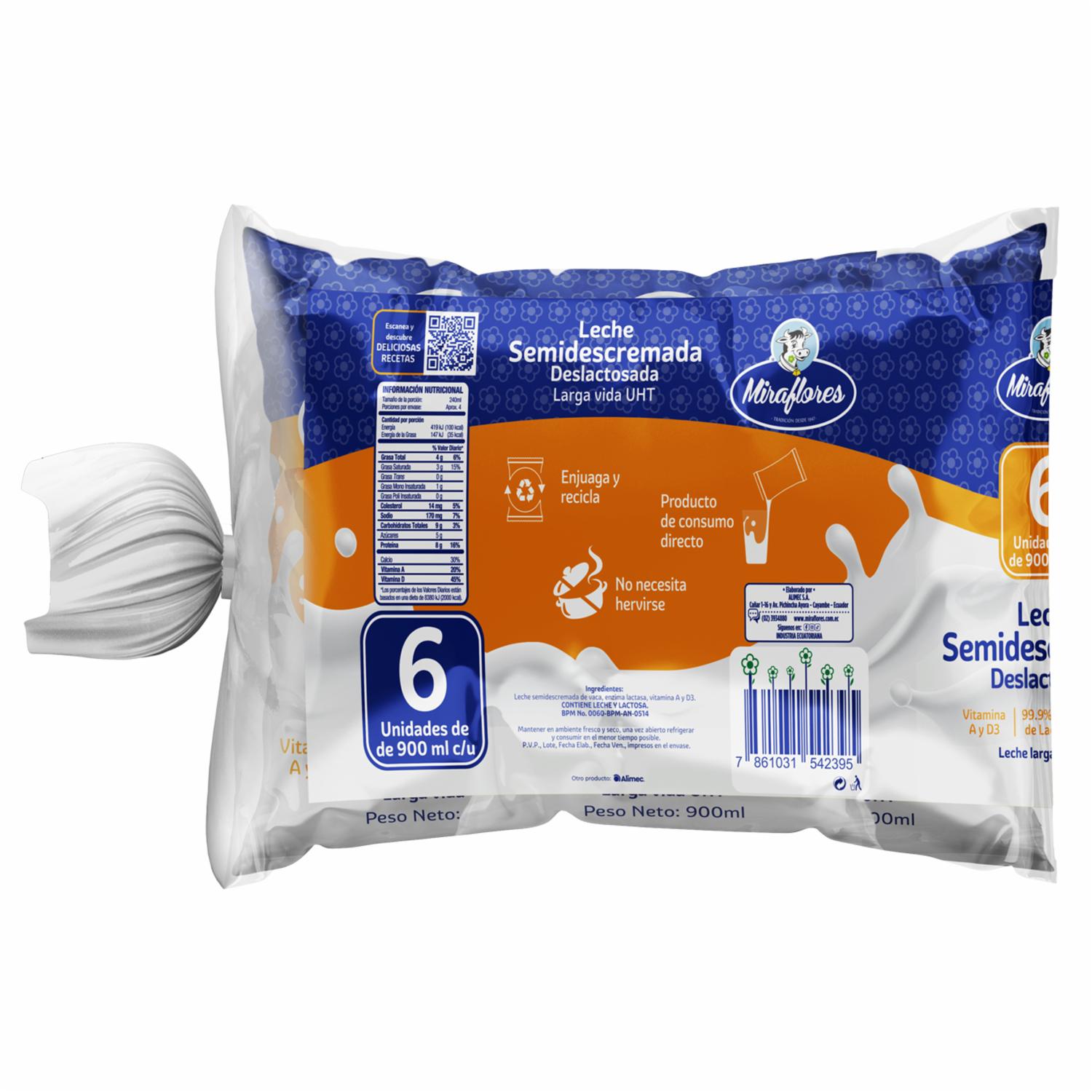Leche Semidescremada Deslactosada MIRAFLORES 6 X 900 Ml – MIRAFLORES. Disponible en nuestros locales. Precio y stock pueden variar según la tienda.