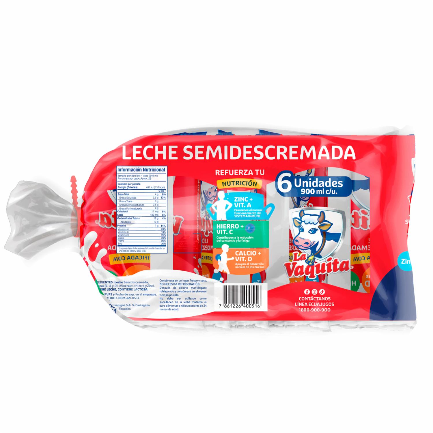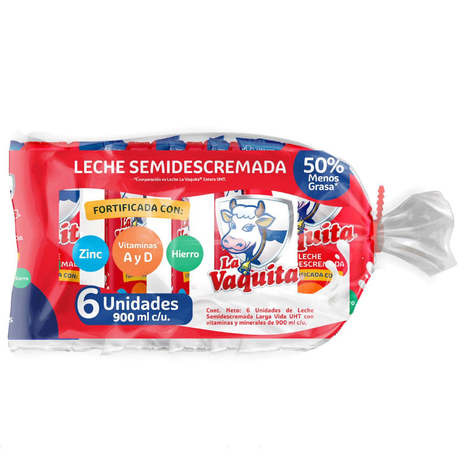 Leche Semidescremada Fortificada LA VAQUITA 6 X 900 Ml