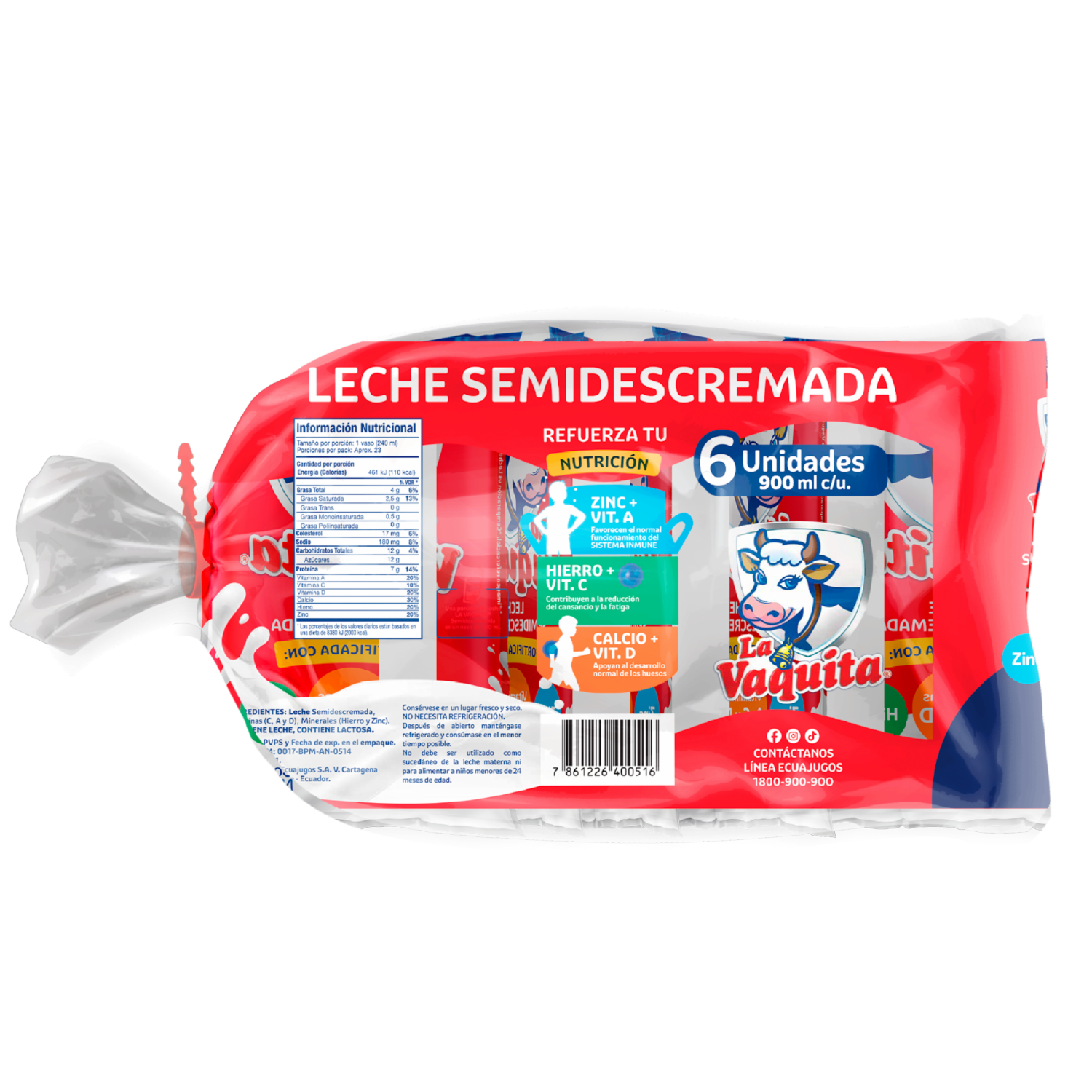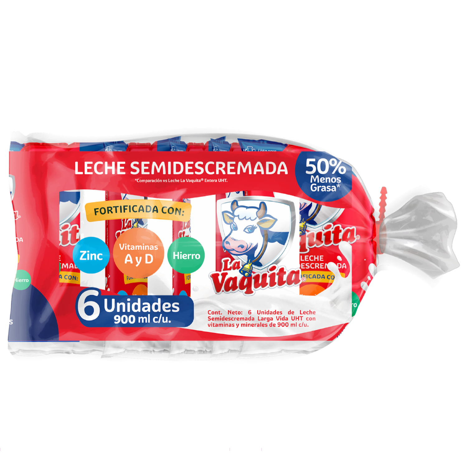 Leche Semidescremada Fortificada LA VAQUITA 6 X 900 Ml – LA VAQUITA. Disponible en nuestros locales. Precio y stock pueden variar según la tienda.