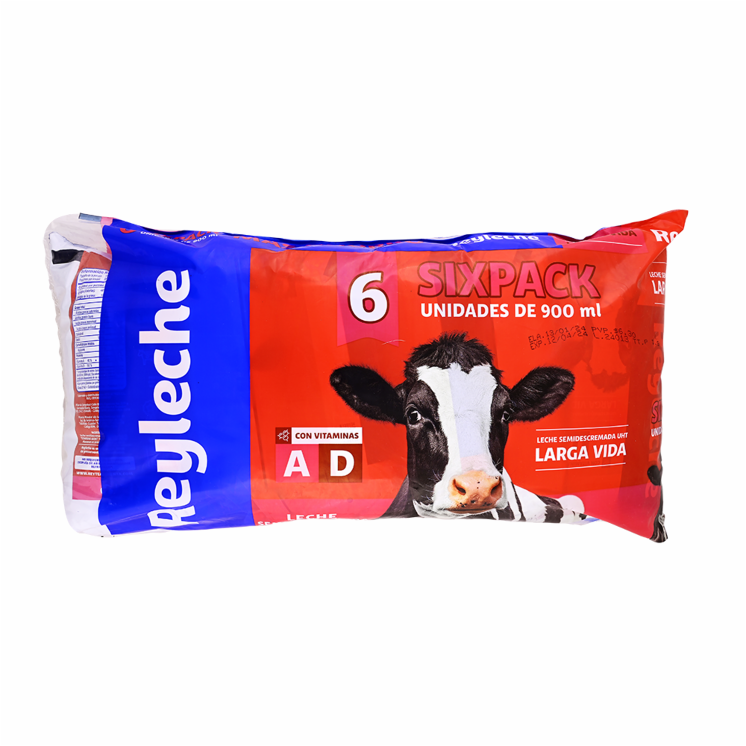 Leche Semidescremada Larga Vida REY LECHE 6 X 900 Ml