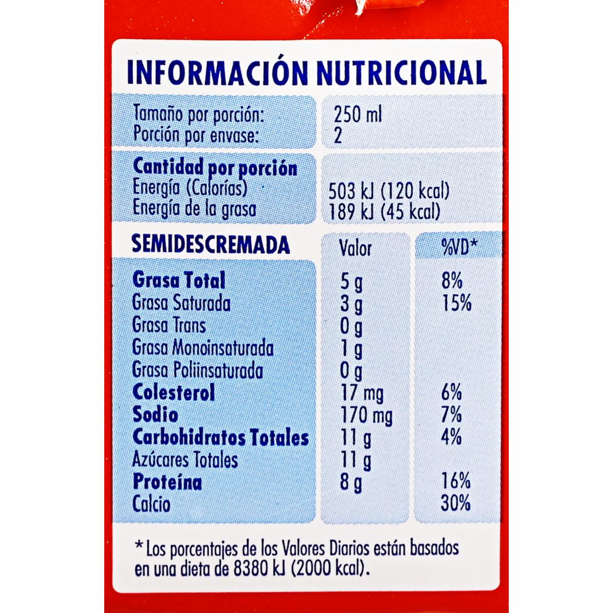 - Leche semidescremada 50% libre de grasa práctico empaque con tapa