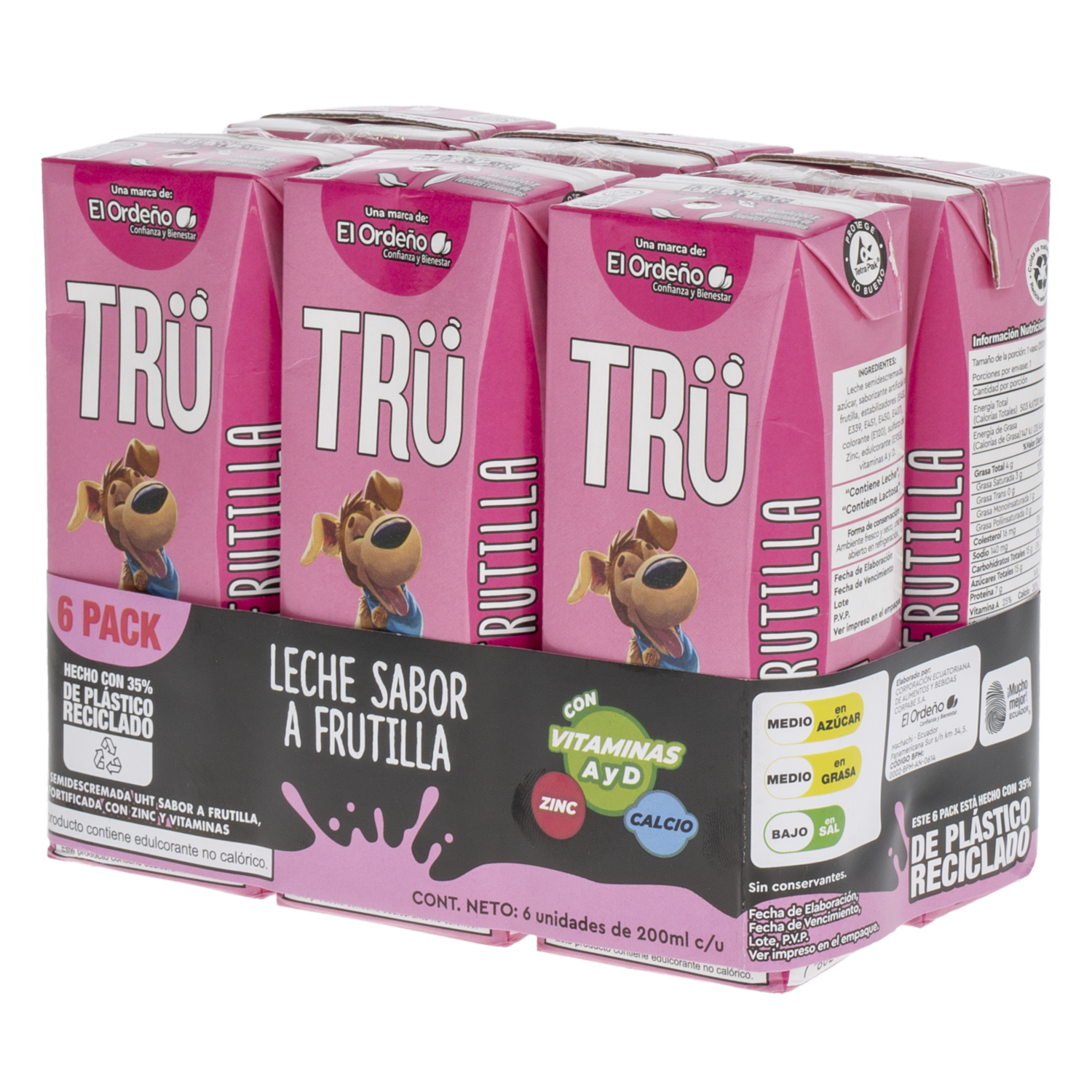 - Leche semidescremada TRU sabor frutilla es deliciosa y divertida. Ideal para loncheras y meriendas de los más pequeños. Nutrición y sabor en un formato práctico