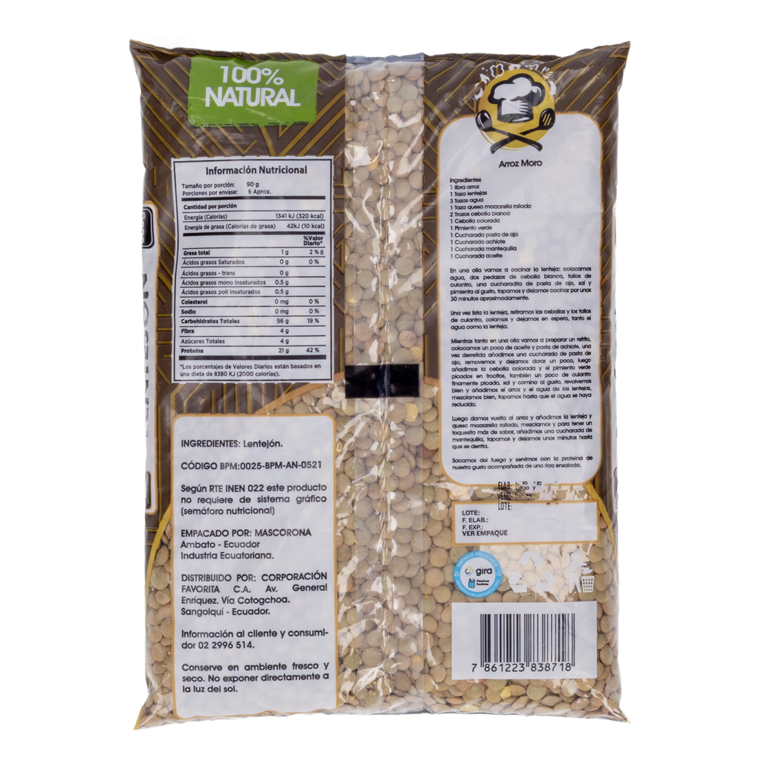 Nutritivo lentejón, granos ideales para preparar sopas, menestras, coladas con alto nivel de vitaminas gracias al hierro que contiene