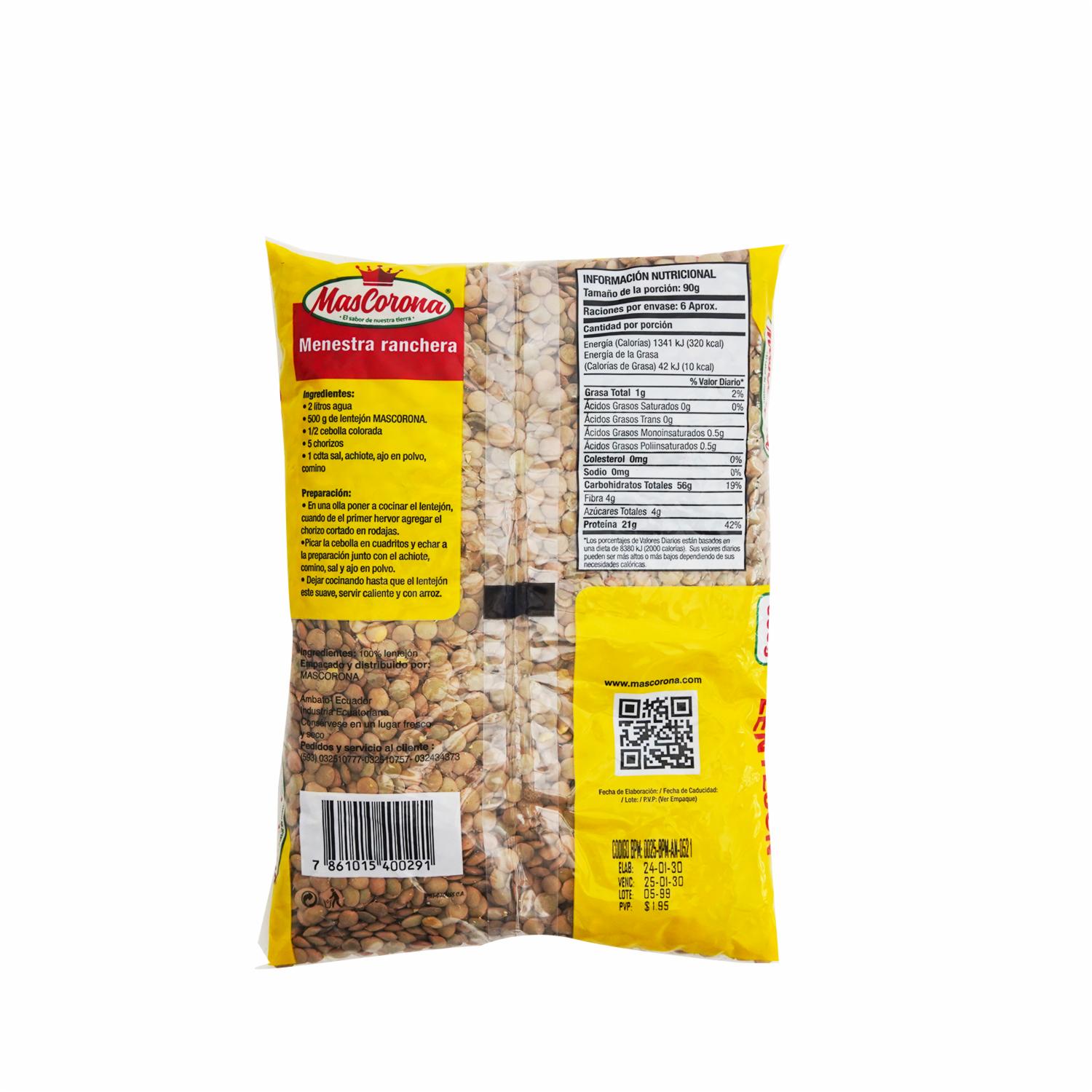 consultando preciosLentejón Sin Gluten MAS CORONA 500 G – MAS CORONA. Disponible en nuestros locales. Precio y stock pueden variar según la tienda.