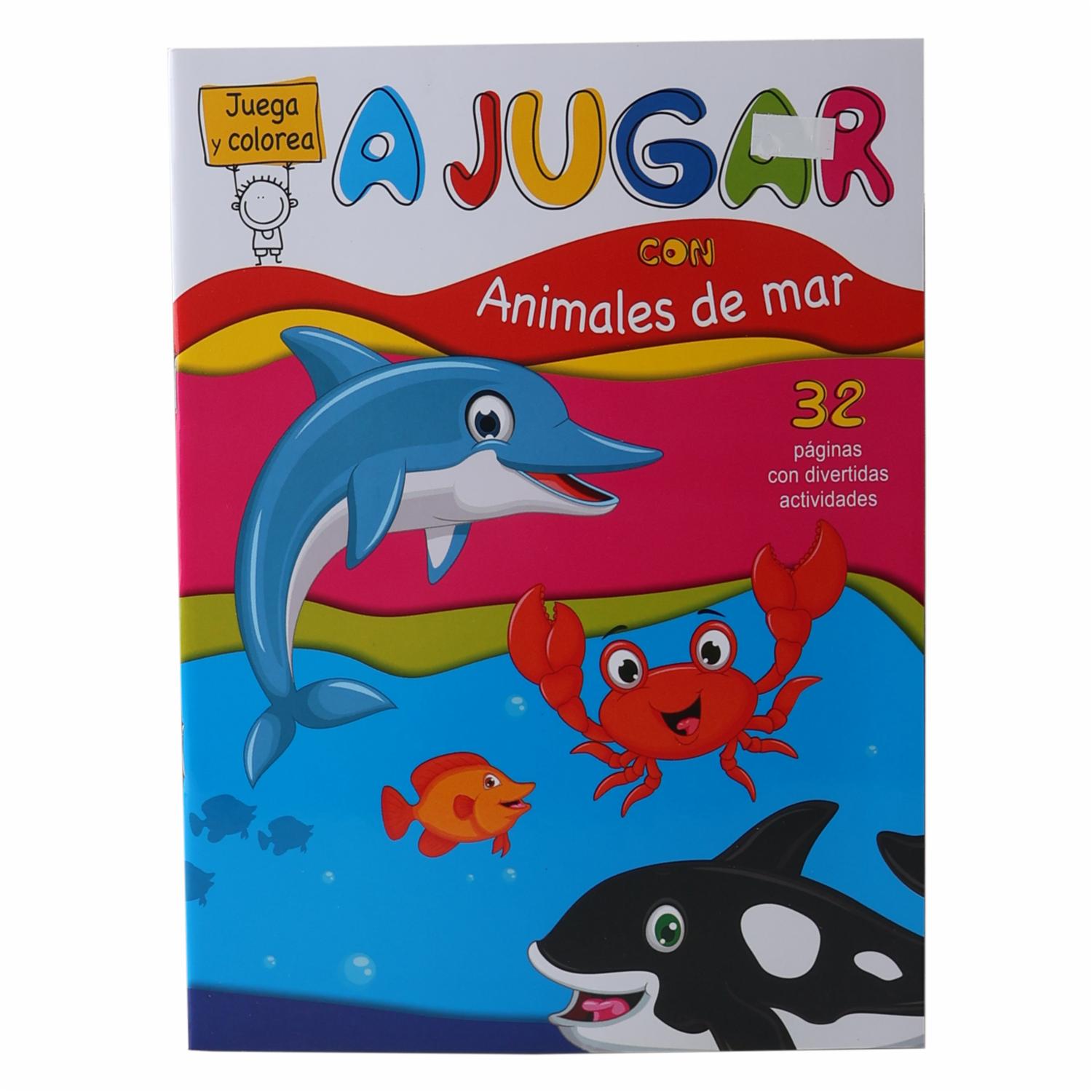 - El libro A Jugar Con Animales de Mar Juega y Colorea permite a los niños explorar el mundo marino mientras se divierten coloreando. Ideal para estimular creatividad, coordinación y conocimiento sobre los animales acuáticos