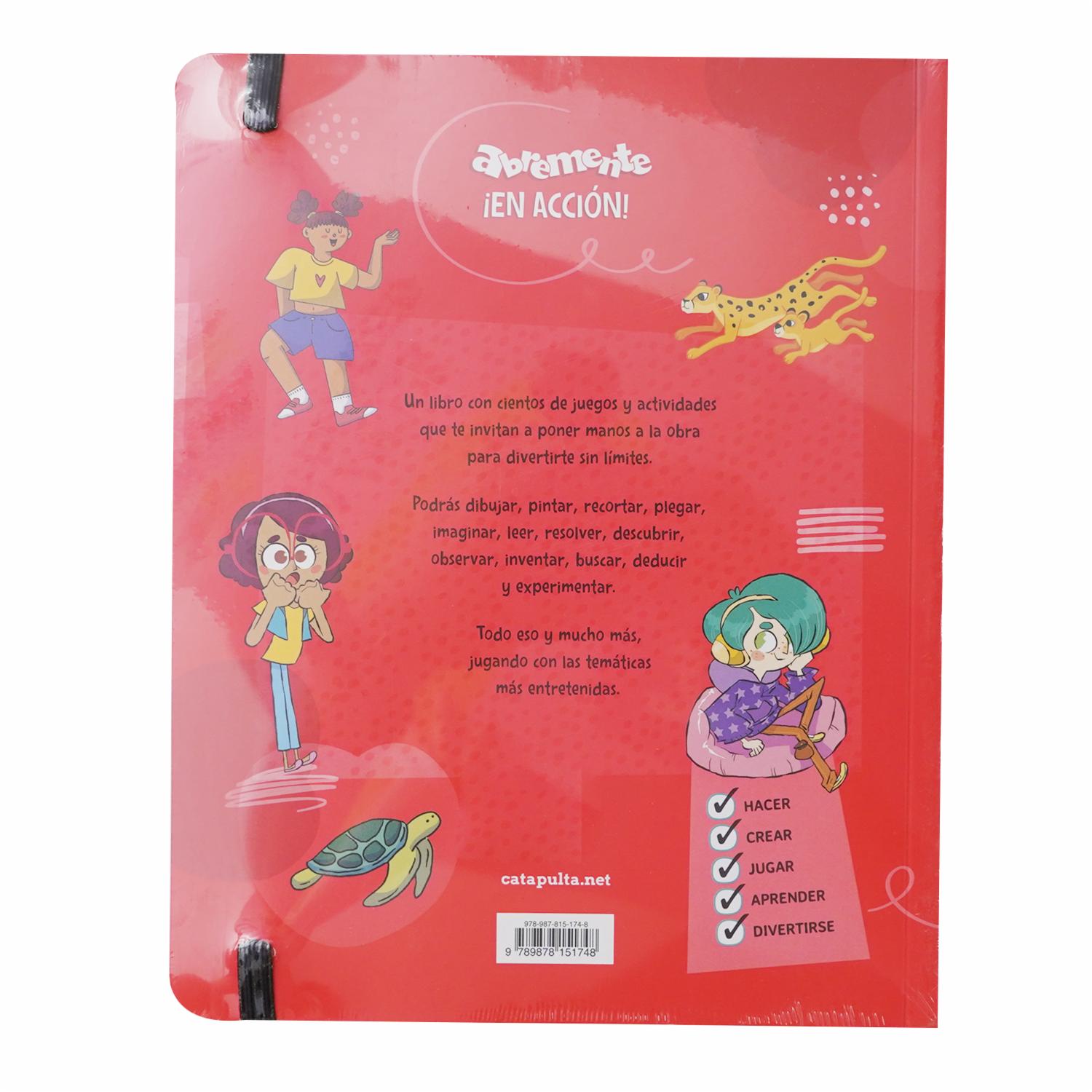 - Abremente ¡En acción! Para lectores de 7 a 8 años con cientos de juegos y actividades que los invitan a poner manos a la obra para aprender y divertirse. Los niños y niñas podrán dibujar, pintar, recortar, plegar, imaginar, leer, resolver, descubrir, observar, inventar, buscar, deducir y experimentar