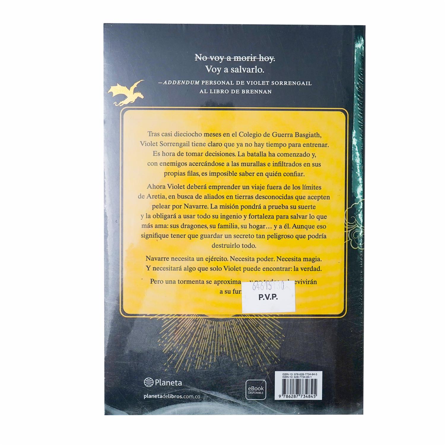 • Tras casi dieciocho meses en el Colegio de Guerra Basgiath, Violet Sorrengail tiene claro que no queda tiempo para entrenar. Hay que tomar decisiones. La batalla ha comenzado y, con enemigos acercándose a las murallas e infiltrados en sus propias filas, es imposible saber en quién confiar