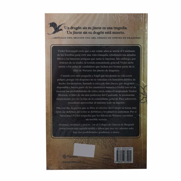 Violet Sorrengail creía que a sus veinte años se uniría al Cuadrante de los Escribas para vivir una vida tranquila, estudiando sus amados libros y las historias antiguas que tanto le fascinan. Sin embargo, por órdenes de su madre, la temida comandante general, Violet debe unirse a los miles de candidatos que luchan por formar parte de la élite de Navarre: los jinetes de dragones