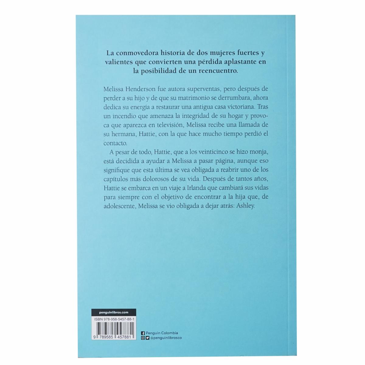 - La conmovedora historia de dos mujeres fuertes y valientes que convierten una pérdida aplastante en la posibilidad de un reencuentro. Melissa Henderson fue autora superventas, pero después de perder a su hijo y de que su matrimonio se derrumbara, ahora dedica su energía a restaurar una antigua casa victoriana. Tras un incendio que amenaza la integridad de su hogar y provoca que aparezca en televisión, Melissa recibe una llamada de su hermana, Hattie, con la que hace años perdió el contacto