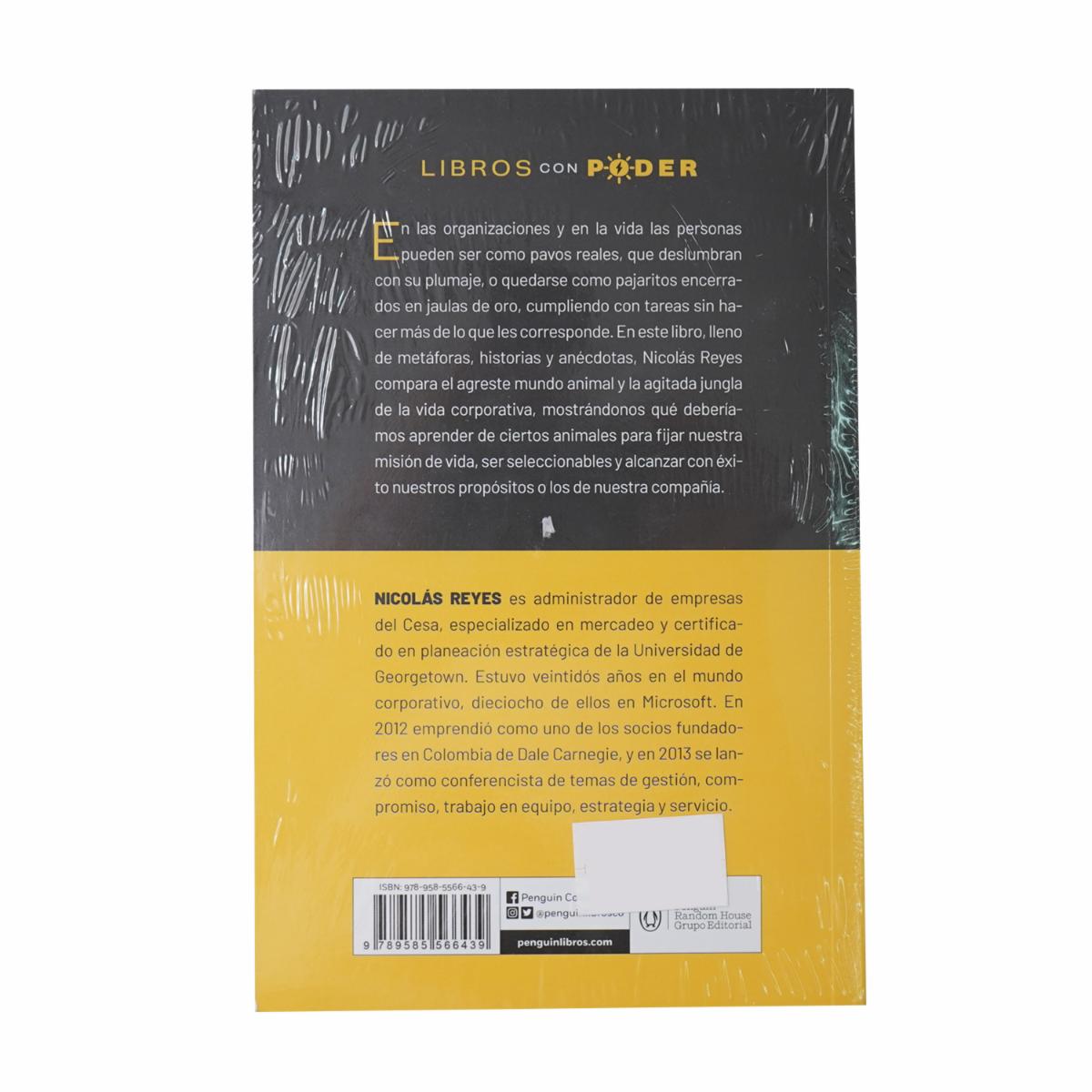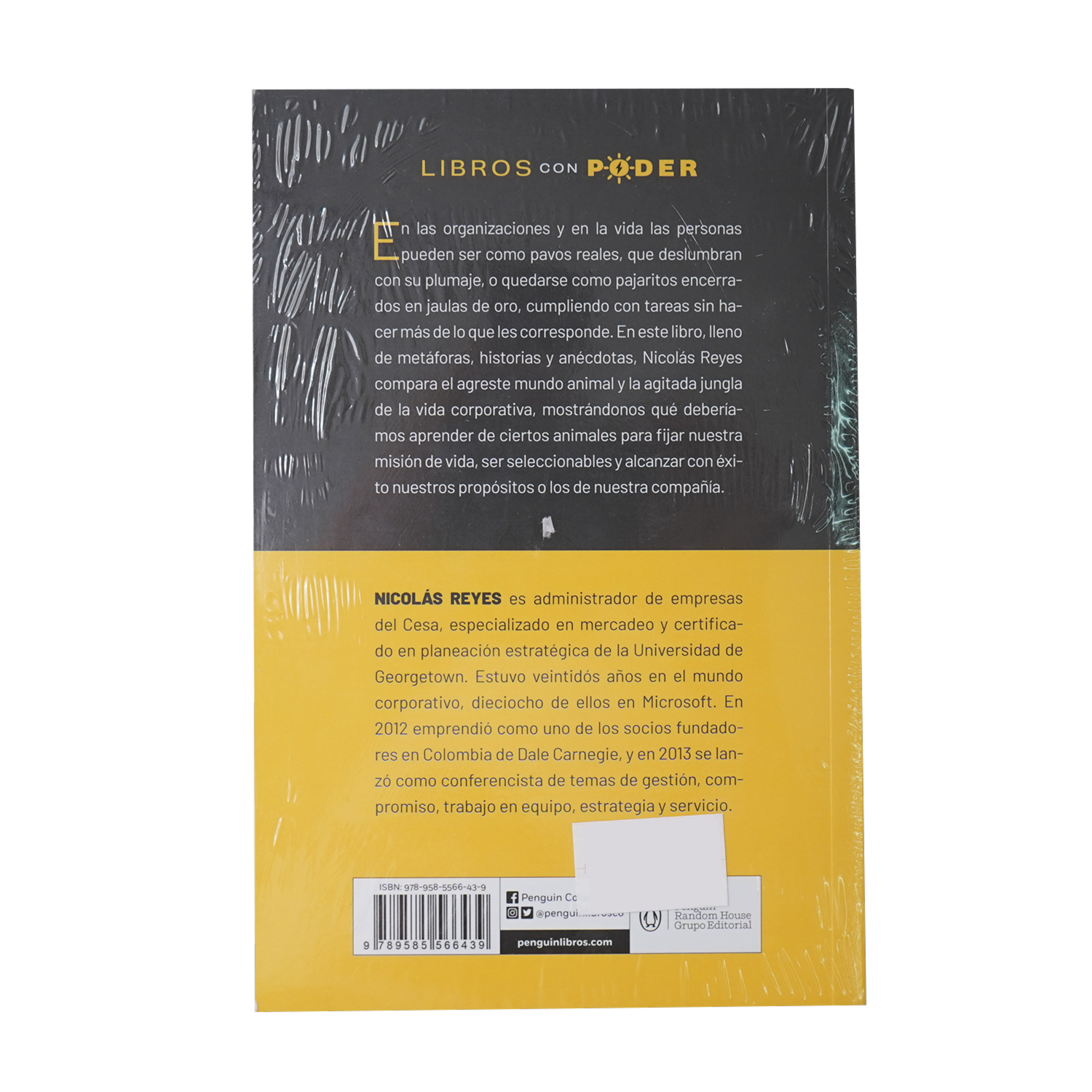 - En este libro, inundado de metáfora s, historias y anécdotas, Nicolás Reyes hace una maravillosa comparación entre el agreste mundo animal, donde la selección natural obliga a las especies más salvajes a atacar, adaptarse y destacarse para subsistir y evolucionar; y las organizaciones, donde empleados y directivos deben encontrar la manera de sobrevivir a la agitada jungla de la vida corporativa y cotidiana