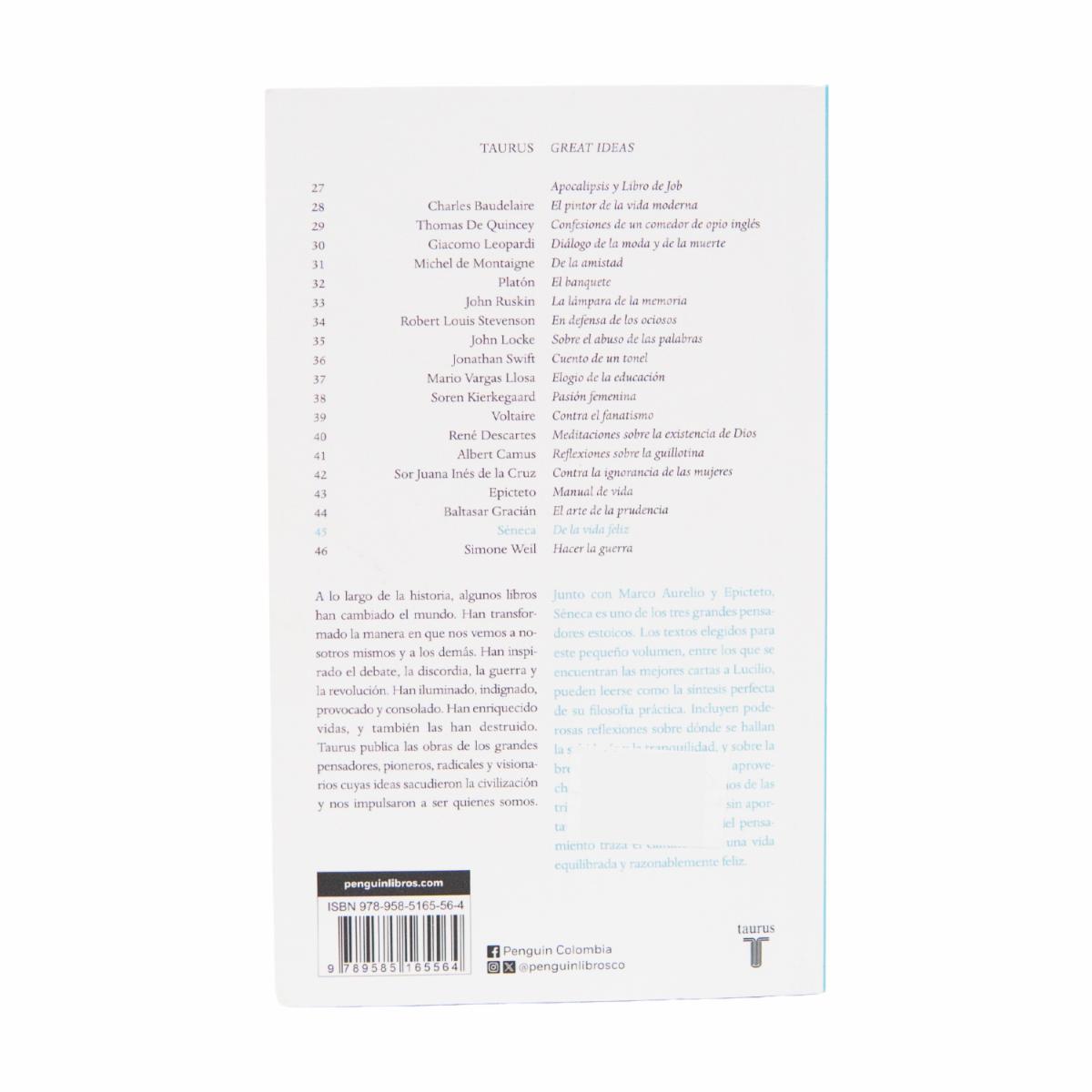 - Este tratado filosófico explora qué significa vivir una vida feliz y plena, analizando virtudes, placeres y el equilibrio necesario para el bienestar. Reflexiona sobre la ética, la sabiduría y la moderación como claves para alcanzar la verdadera felicidad. Una invitación a cultivar la vida interior y las relaciones para lograr un estado de armonía y satisfacción duradera