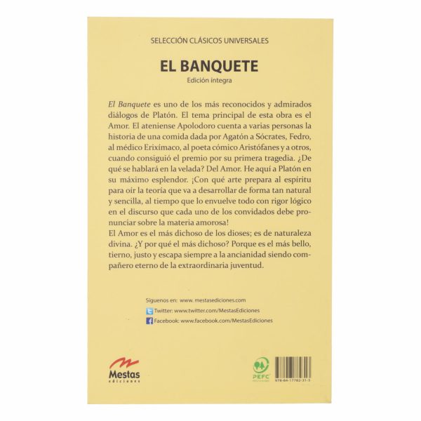 Es uno de los más reconocidos y admirados diálogos de Platon. El tema principal de esta obra es el amor. El ateniense Apolodoro cuenta a varias personas la historia de una comida dada por Agatón a Sócrates, Fedro, al médico Erixímaco, al poeta cómico Aristófanes y a otros, cuando consigió el premio por su primera tragedia