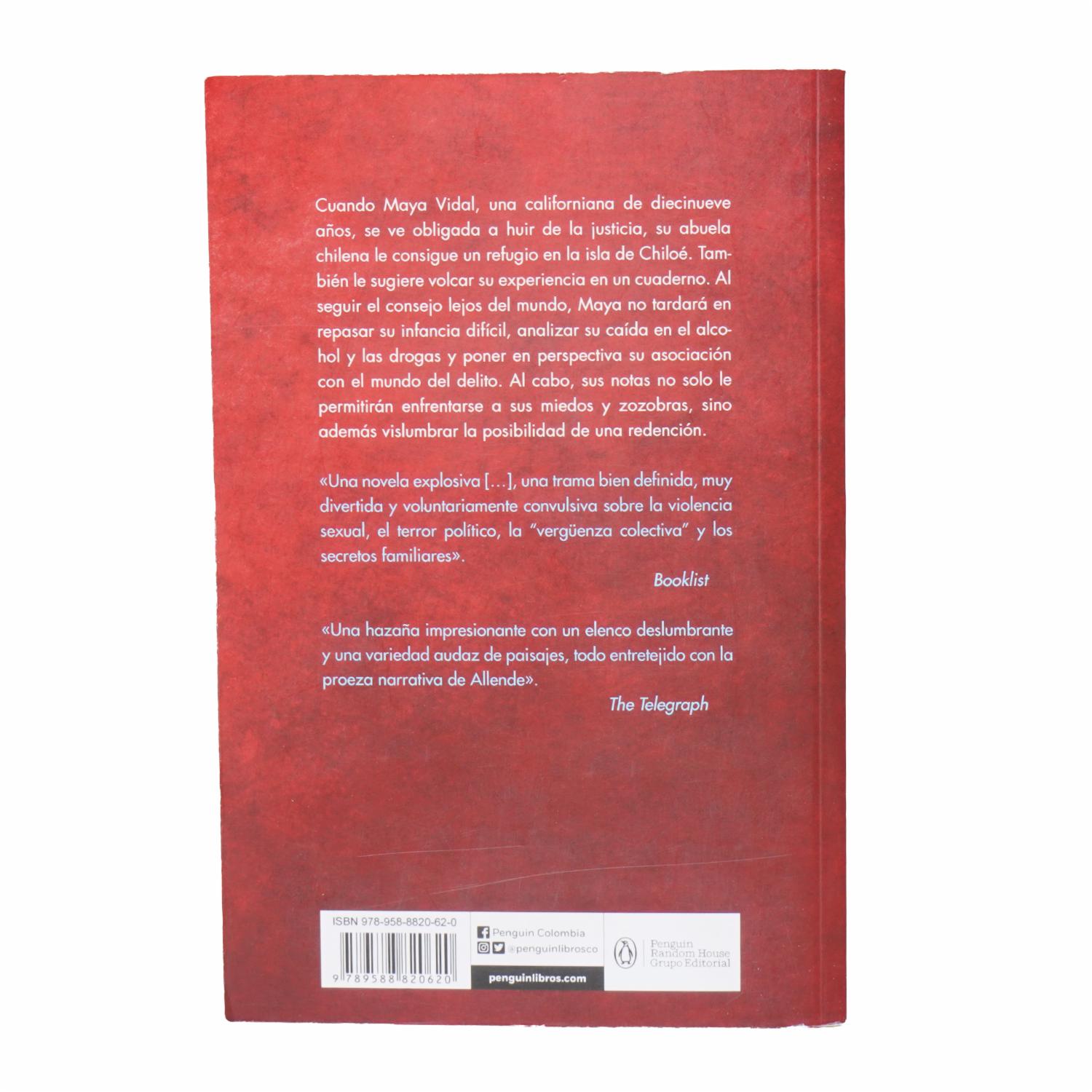 • Cuando Maya Vidal, una californiana de diecinueve años, se ve obligada a huir de la justicia, su abuela chilena le consigue un refugio en la isla de Chiloé. Tam- bien le sugiere volcar su experiencia en un cuaderno