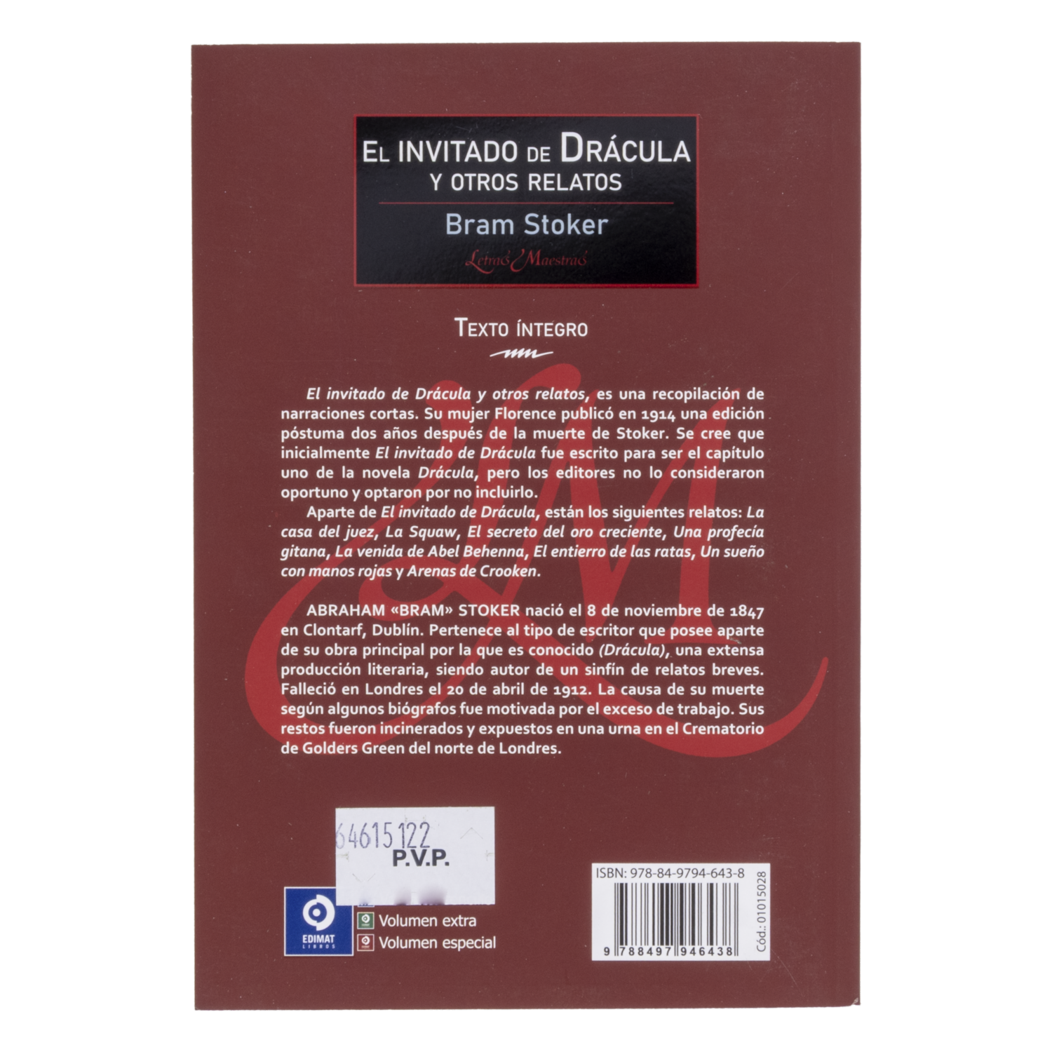 - El invitado de Drácula y otros relatos es una antología de terror gótico de Bram Stoker publicada de forma póstuma. Incluye el célebre relato que iba a ser el inicio de Drácula, donde un viajero inglés vive un encuentro sobrenatural durante la noche de Walpurgis. La obra se completa con historias inquietantes como La casa del juez y El entierro de las ratas