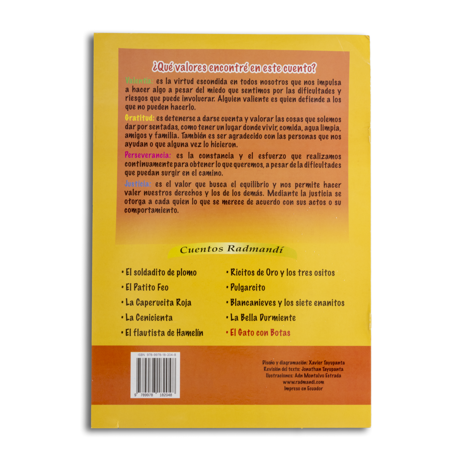 - Colección creada pensando en una relación afectiva, fuerte y robusta entre padres e hijos. Las ilustraciones a todo color fomentan la imaginación y estimulan la curiosidad de las niñas y niños. Mientras el adulto lee la historia, ya conocida, trae un mensaje de valores para los pequeños en etapa de aprendizaje