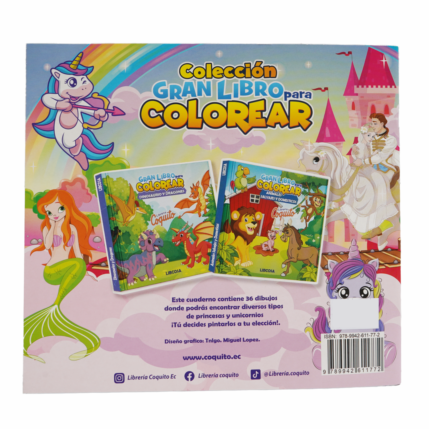 Libro Gran Libro Para Colorear Princesas Y Unicornios COQUITO 36 Páginas