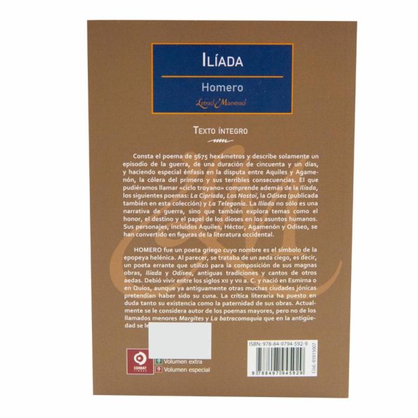 Este poema épico narra los últimos días de la guerra de Troya, centrado en la ira del héroe Aquiles y sus consecuencias. Entre batallas gloriosas, dioses intervienen en el destino de los mortales, revelando temas de honor, destino y heroísmo. Una obra fundamental de la literatura clásica que explora la grandeza y tragedia de la humanidad