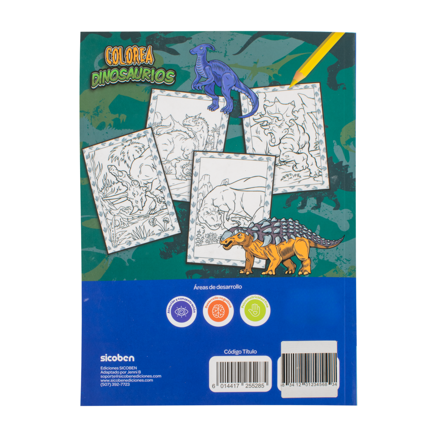 - Despierta la creatividad de los más pequeños con el libro de coloreo "Dinosaurios" en color verde oscuro de SICOBEN. Este libro ofrece una variedad de divertidas ilustraciones de dinosaurios para colorear, perfecto para mantener a los niños entretenidos mientras desarrollan sus habilidades artísticas