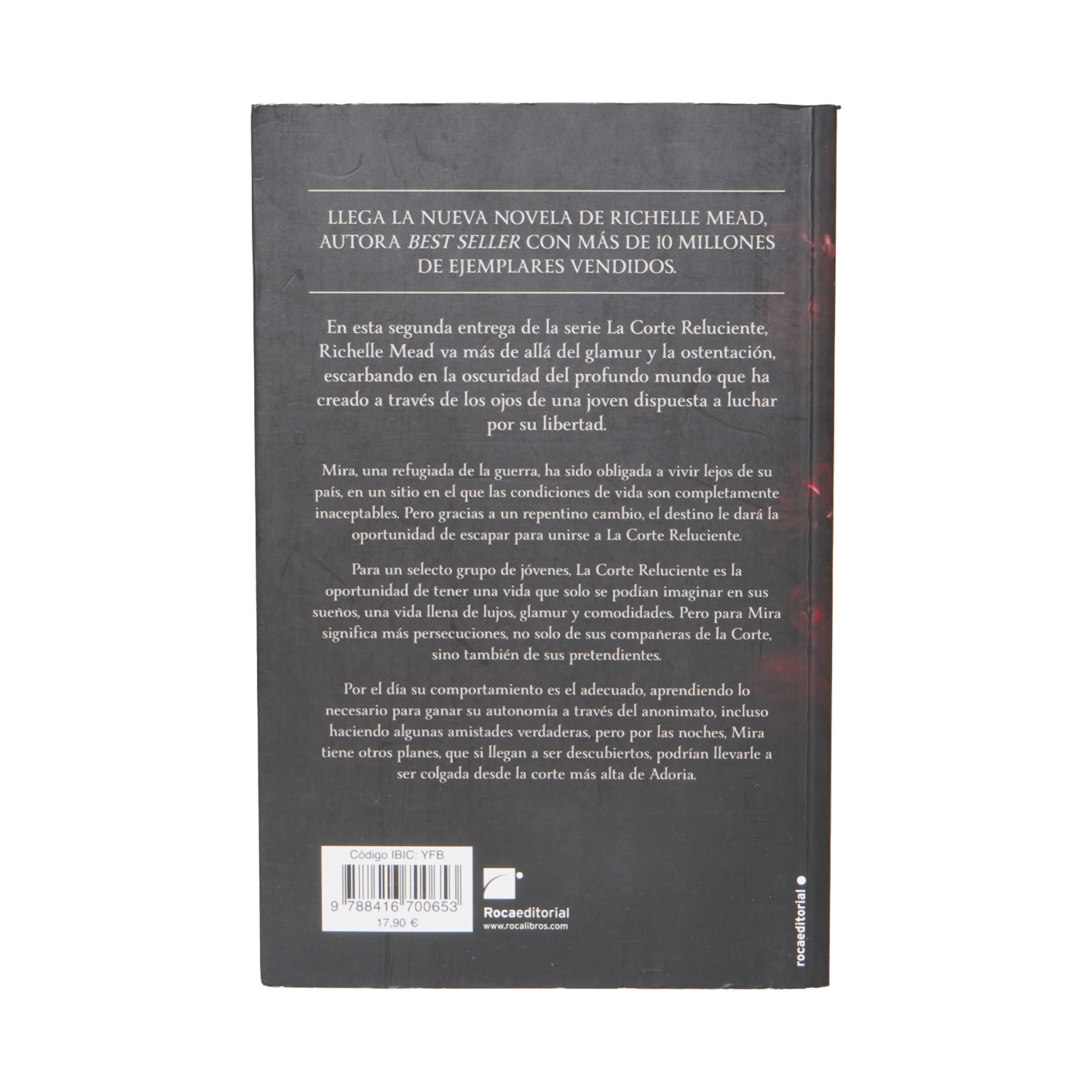 - Segunda entrega de la nueva trilogía de Richelle Mead, autora de la serie best seller mundial Vampire Academy. Mira, una refugiada de la guerra, ha sido obligada a vivir lejos de su país, en un sitio en el que las condiciones de vida son completamente inaceptables. Pero gracias a un repentino cambio, el destino le dará la oportunidad de escapar para unirse a La Corte Reluciente