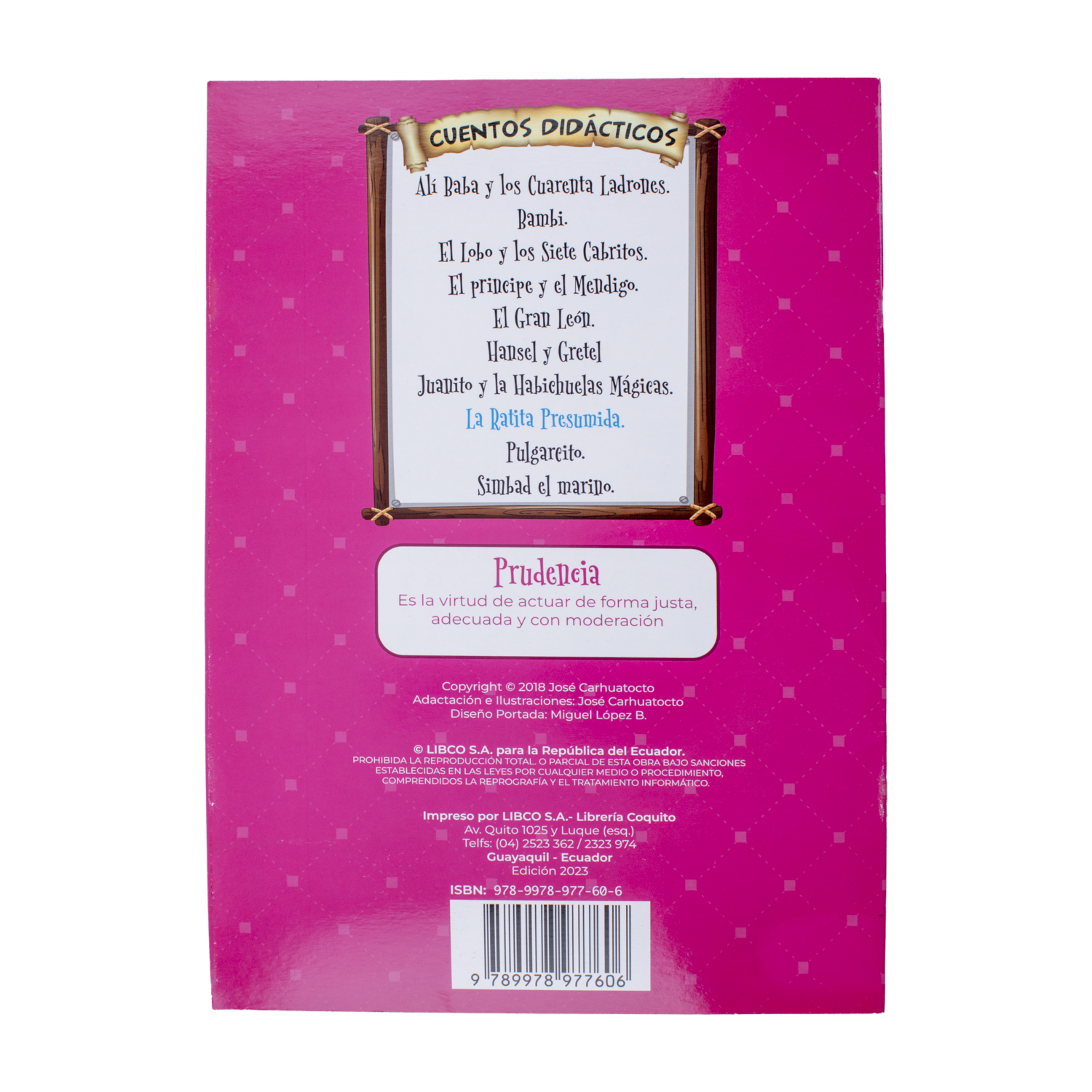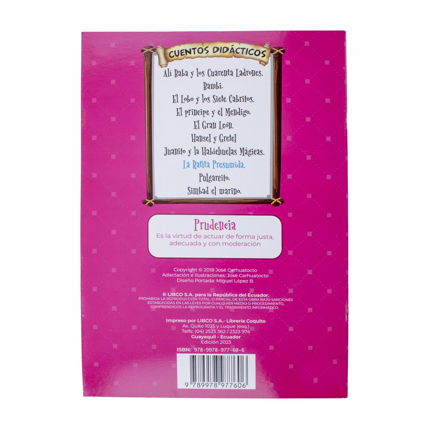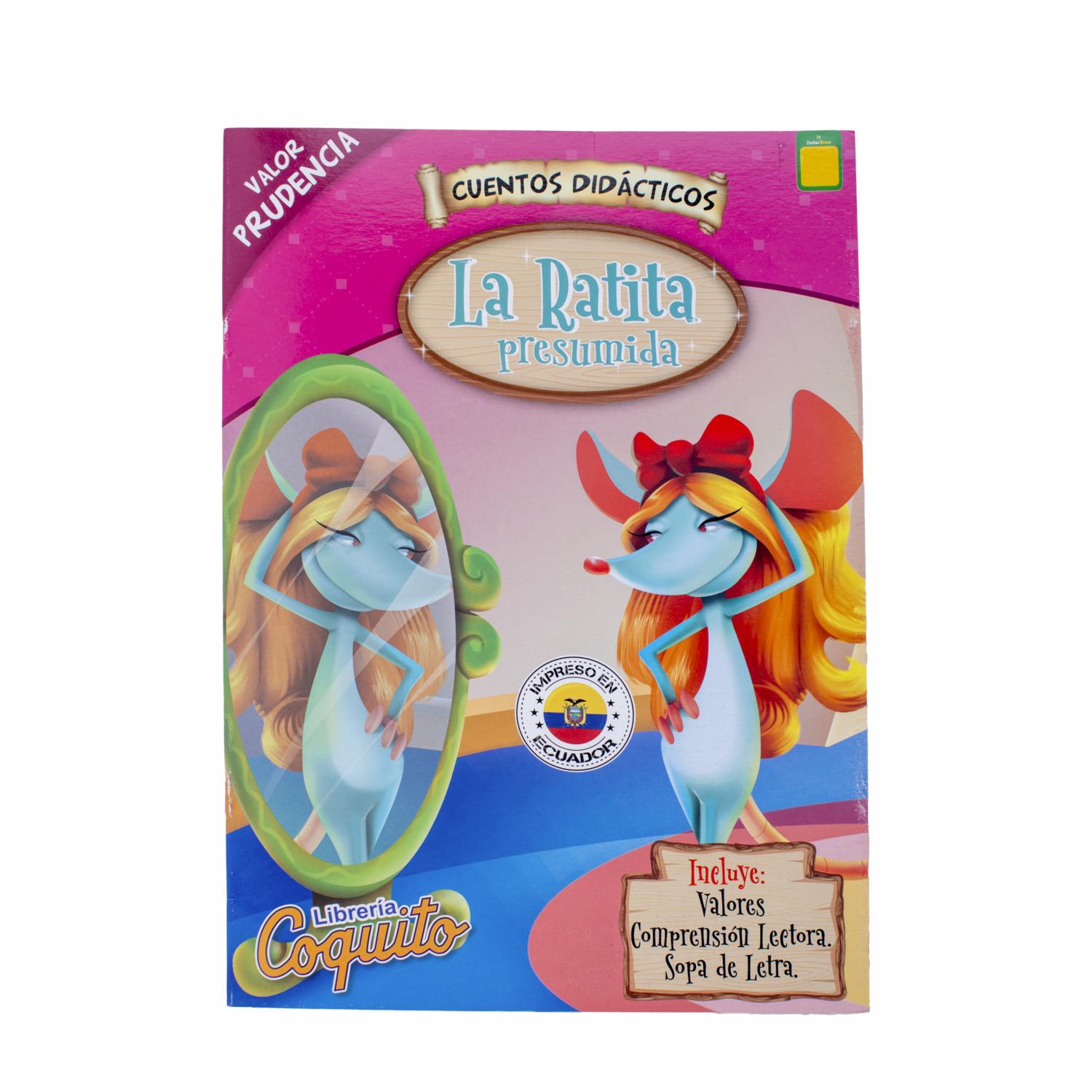 - - Libro de 18 páginas,- Título: La Ratita Presumida,- Formato: COQUITO,- Dirigido a niños y niñas,- Contiene ilustraciones a color,- Cuenta la historia de la ratita que se siente muy orgullosa de su belleza y rechaza a pretendientes que no cumplen con sus expectativas