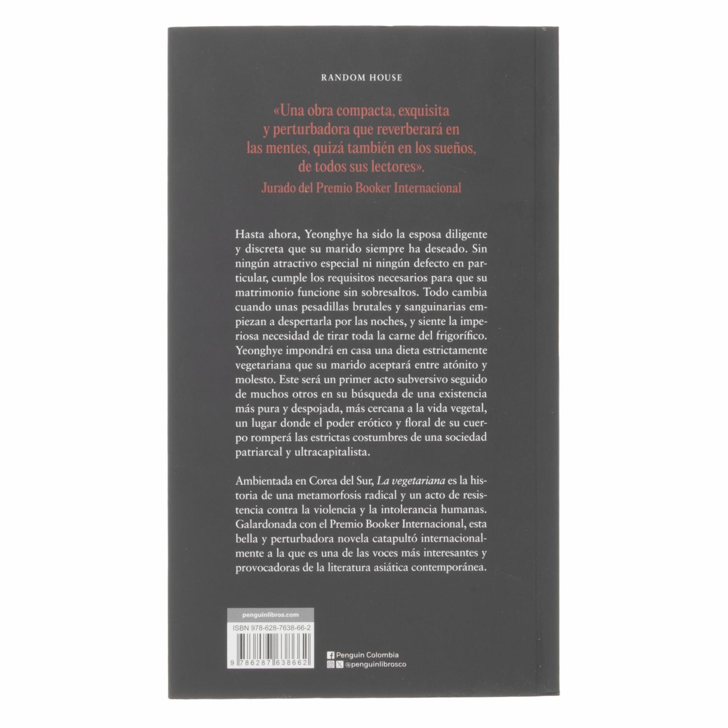 - Es una novela perturbadora que narra la historia de Yeong-hye, una mujer surcoreana que, tras una serie de sueños inquietantes, decide dejar de comer carne. Esta decisión desencadena una serie de consecuencias inesperadas que alteran su vida y la de su entorno. La obra explora temas como la autonomía corporal, la represión social y la lucha por la identidad en una sociedad estrictamente normativa