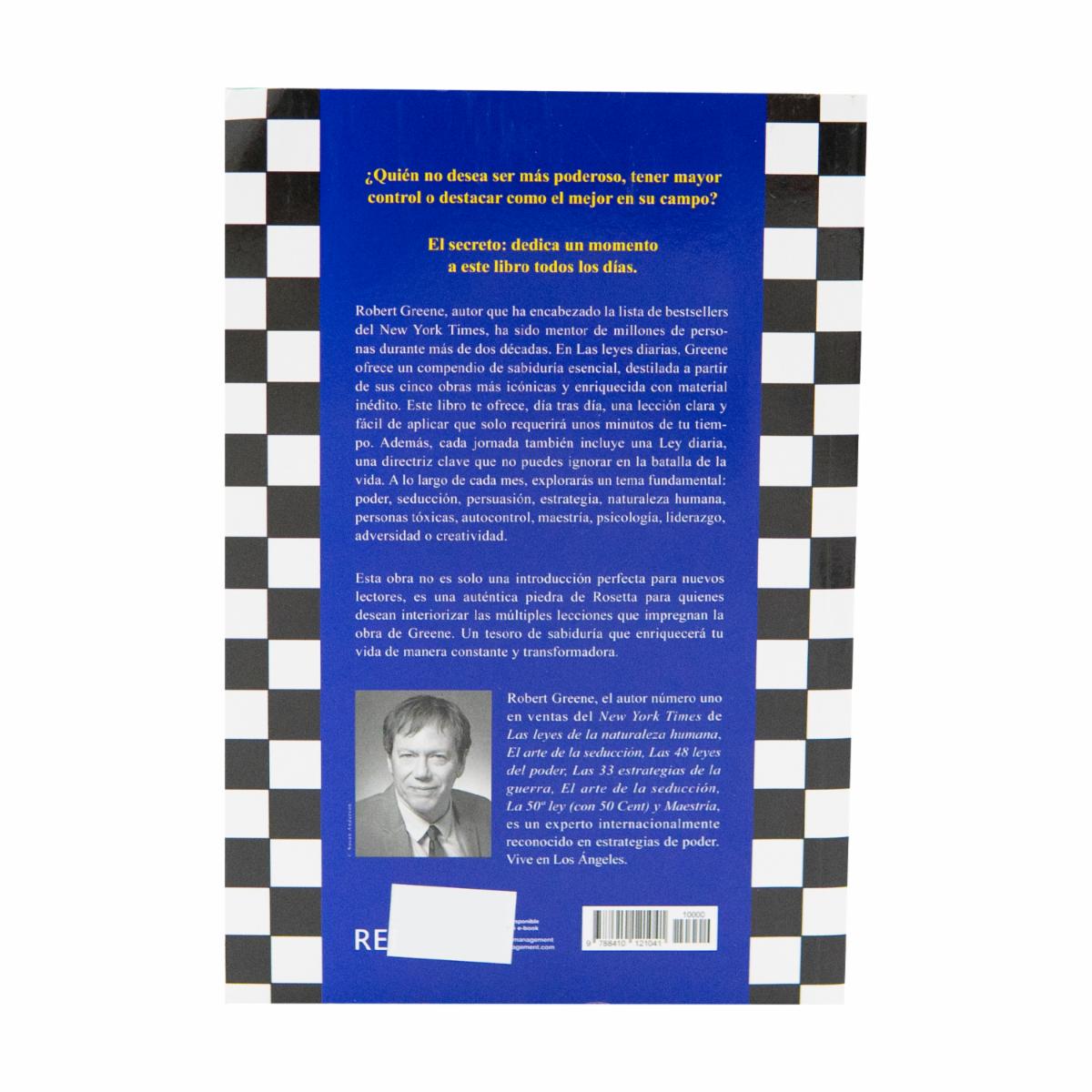 - Las Leyes Diarias de Robert Greene presenta 366 breves lecciones diseñadas para guiarnos cada día en áreas como poder, seducción, estrategia, liderazgo, productividad y adversidad. Basada en 25?años de su estudio sobre la naturaleza humana, ofrece claves accesibles para entendernos a nosotros mismos y a los demás, y aplicar con sabiduría esas enseñanzas en la vida diaria.