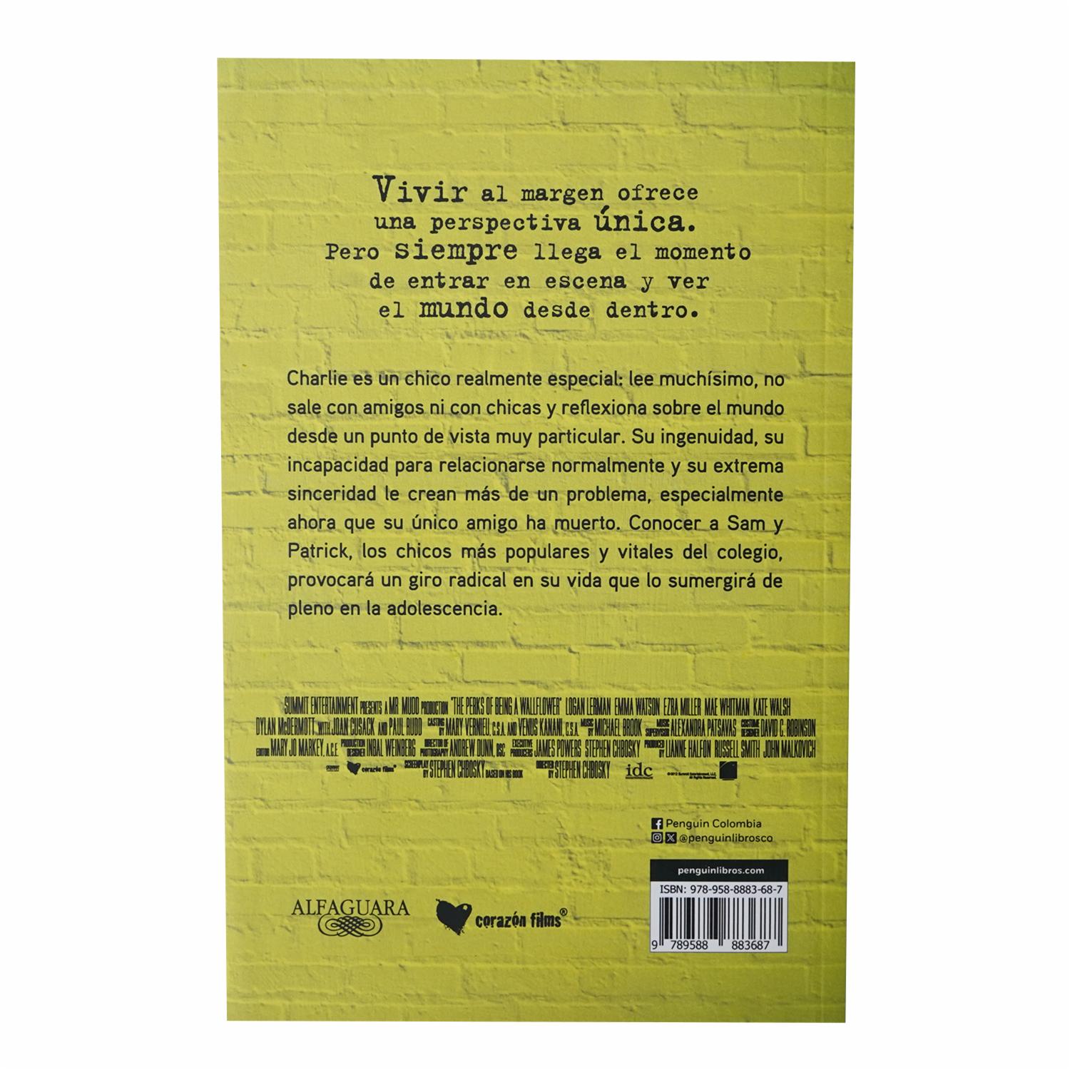 Vivir al margen ofrece una perspectiva única. Pero siempre llega el momento de entrar en escena y ver el mundo desde dentro. Charlie es un chico realmente especial: lee muchísimo, no sale con amigos ni con chicas y reflexiona sobre el mundo desde un punto de vista muy particular. Su ingenuidad, su incapacidad para relacionarse normalmente y su extrema sinceridad le crean más de un problema, especialmente ahora que su único amigo ha muerto