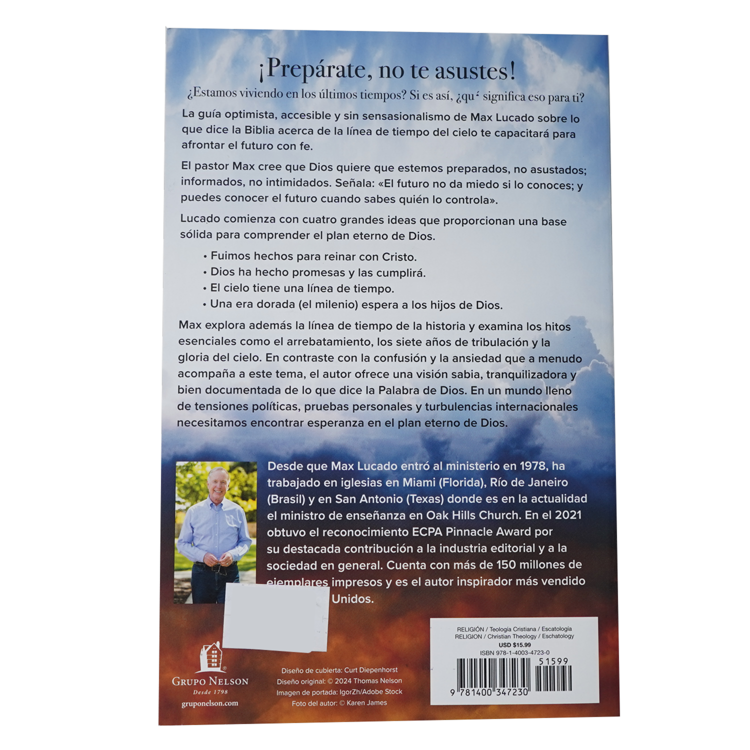 - ¿Estamos viviendo el final de los tiempos? Si es así, ¿qué significa eso para mí? La guía optimista, accesible y no sensacionalista de Max Lucado sobre lo que dice la Biblia acerca de la línea temporal del cielo capacitará a los lectores para afrontar el futuro con fe