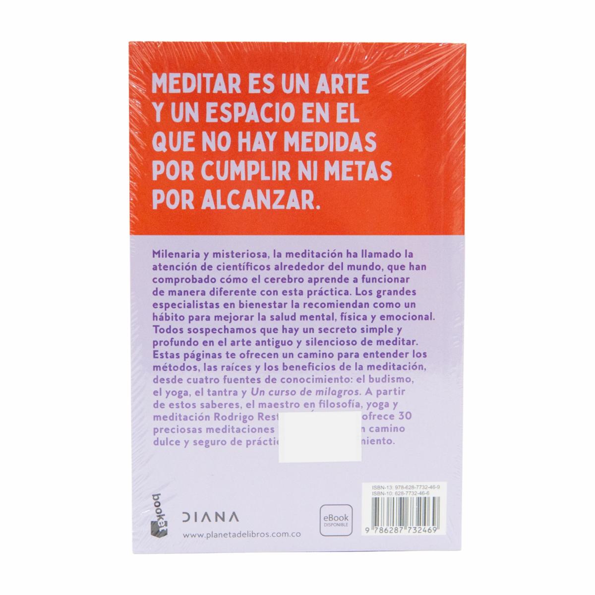 - Meditar de Rodrigo Restrepo es una obra accesible y profunda que invita a explorar la meditación desde diversas tradiciones: budismo, yoga, tantra y Un curso de milagros. Con 30 meditaciones guiadas, el autor busca acompañar al lector en un viaje de autoconocimiento y serenidad. Este libro no se adscribe a un linaje específico, sino que ofrece herramientas para que cada persona descubra su propio camino hacia la paz interior