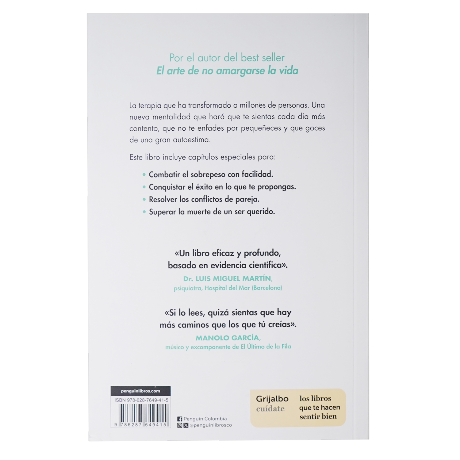 - La terapia que ha transformado a millones de personas. Una nueva mentalidad que hará que te sientas cada día más contento, que no te enfades por pequeñeces y que goces de una gran autoestima. Este libro incluye capítulos especiales para: - Combatir el sobrepeso con facilidad. - Conquistar el éxito en lo que te propongas. - Resolver los conflictos de pareja. - Superar la muerte de un ser querido