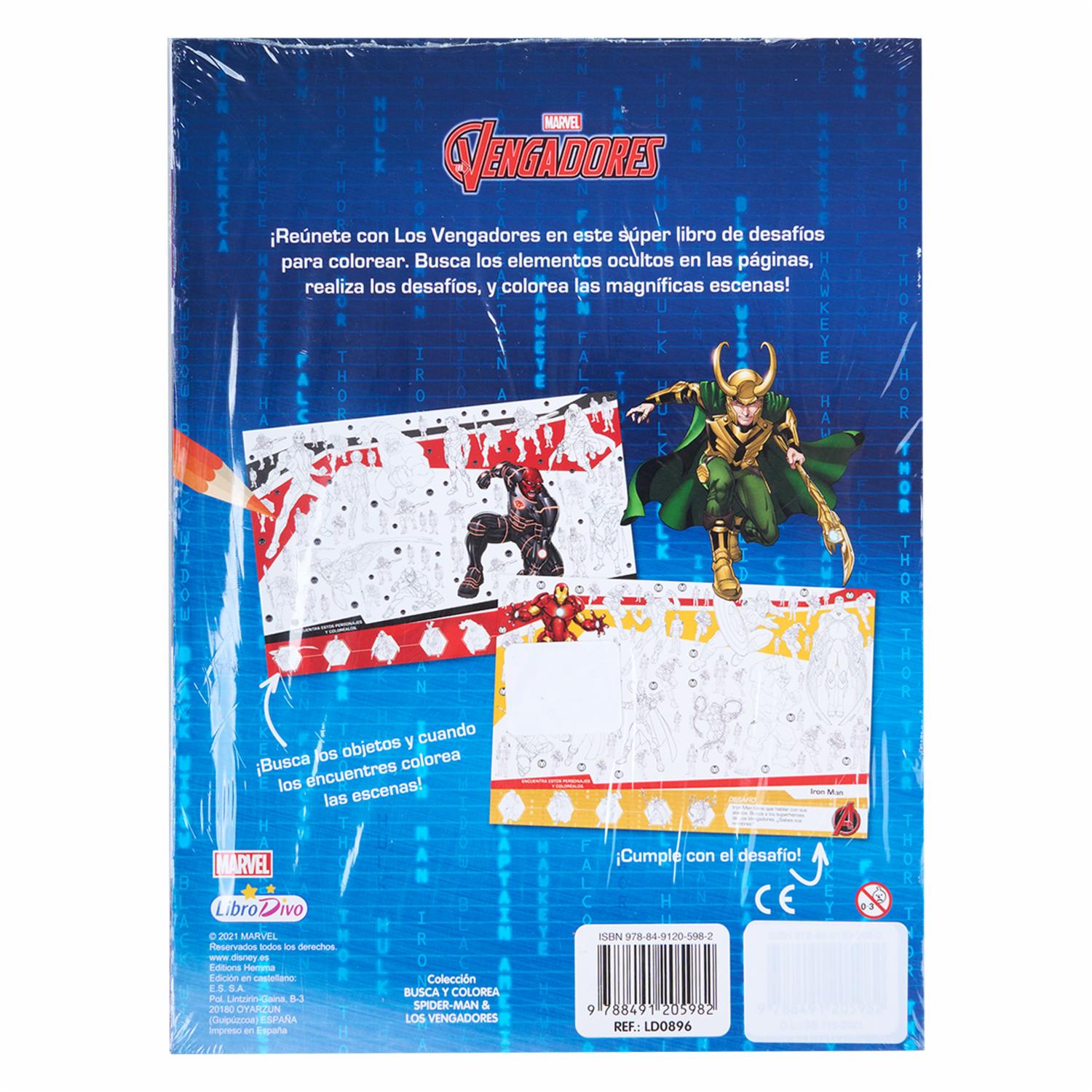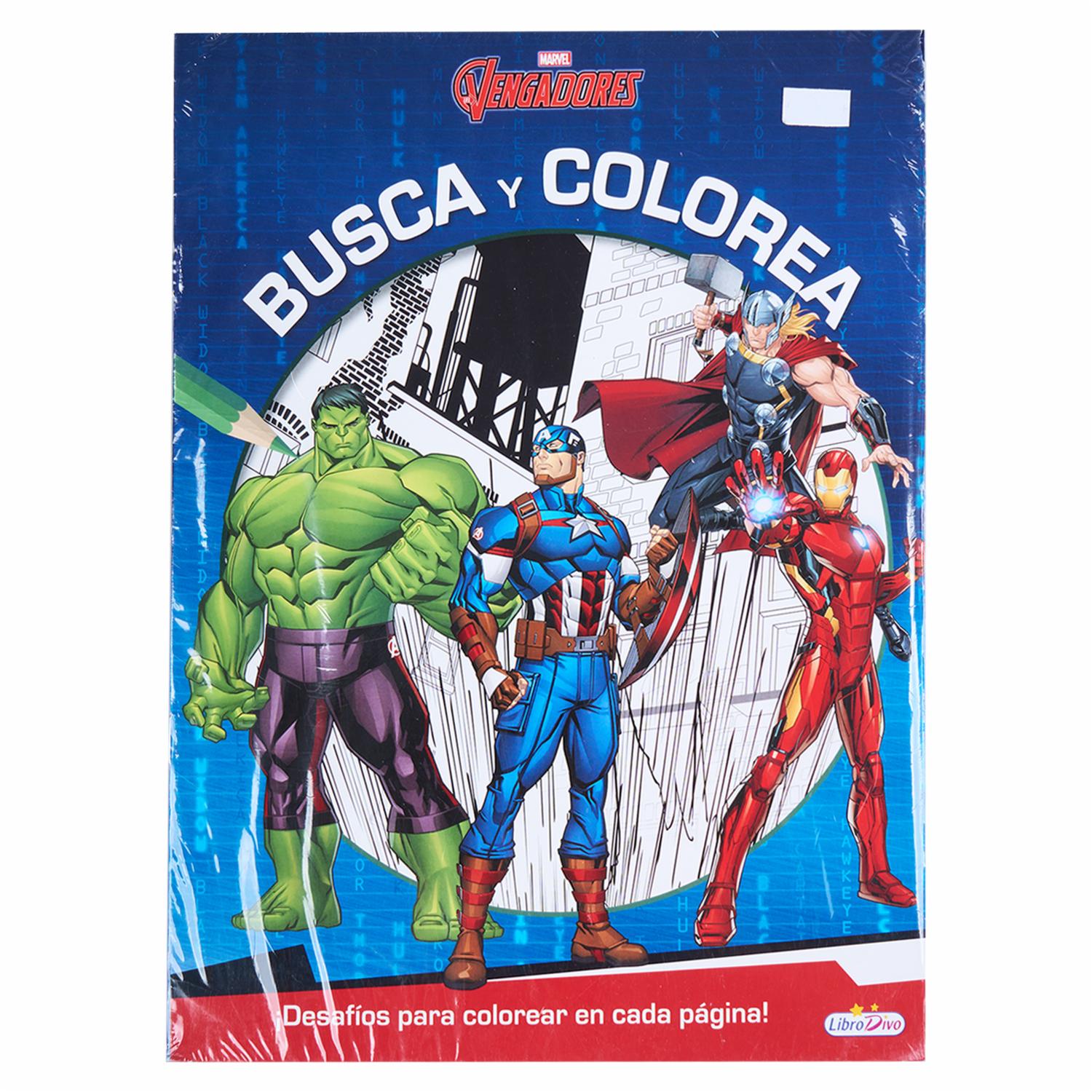 - Busca y Colorea Vengadores es un libro de actividades que permite a los niños buscar y colorear a los personajes de los Vengadores. A través de diversas actividades, los niños desarrollarán sus habilidades motoras finas y su creatividad, mientras disfrutan de sus superhéroes favoritos