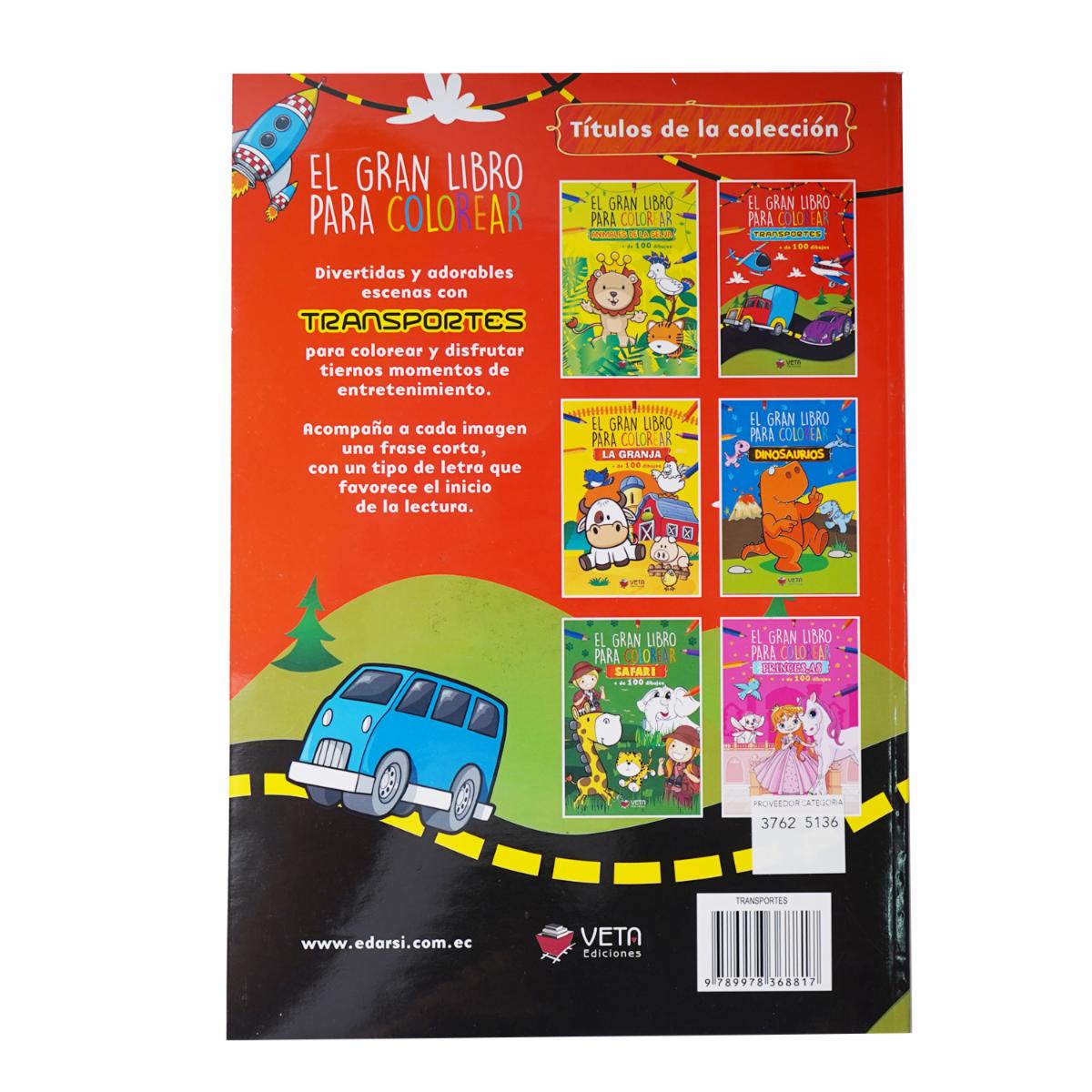 Libro Trasnortes Gran Libro Para Colorear VETA EDICIONES 96 Páginas