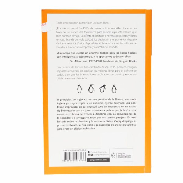 • En esta historia sobre la obsesión y la memoria, Stefan zweig despliega su prosa envolvente, su fina ironía y su capacidad de análisis psicológico para crear un clásico inolvidable