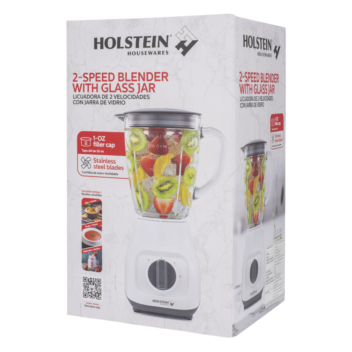 - Licuadora de dos velocidades con jarra de vidrio HOLSTEIN es ideal para preparar jugos, batidos y salsas de forma rápida y sencilla