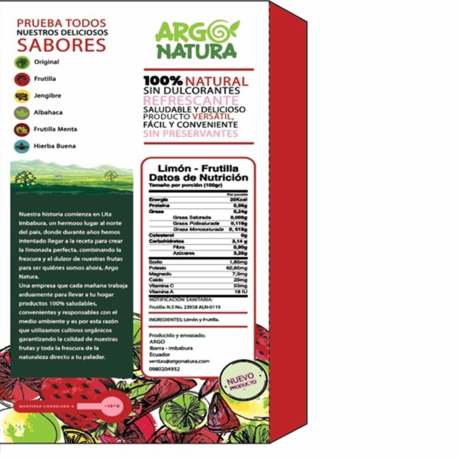 Limonada Congelada Con Frutilla ARGO NATURA Pack X6 X 100 Ml