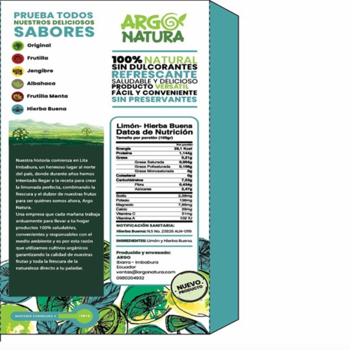 Limonada Congelada Con Hierbabuena ARGO NATURA Pack X6 X 100 Ml