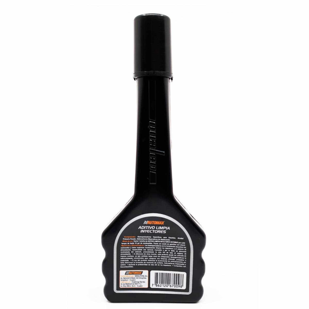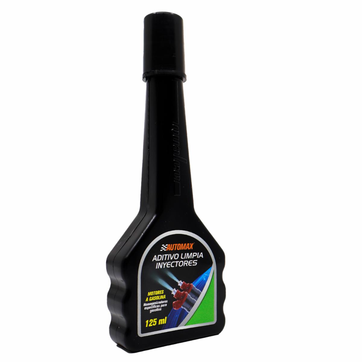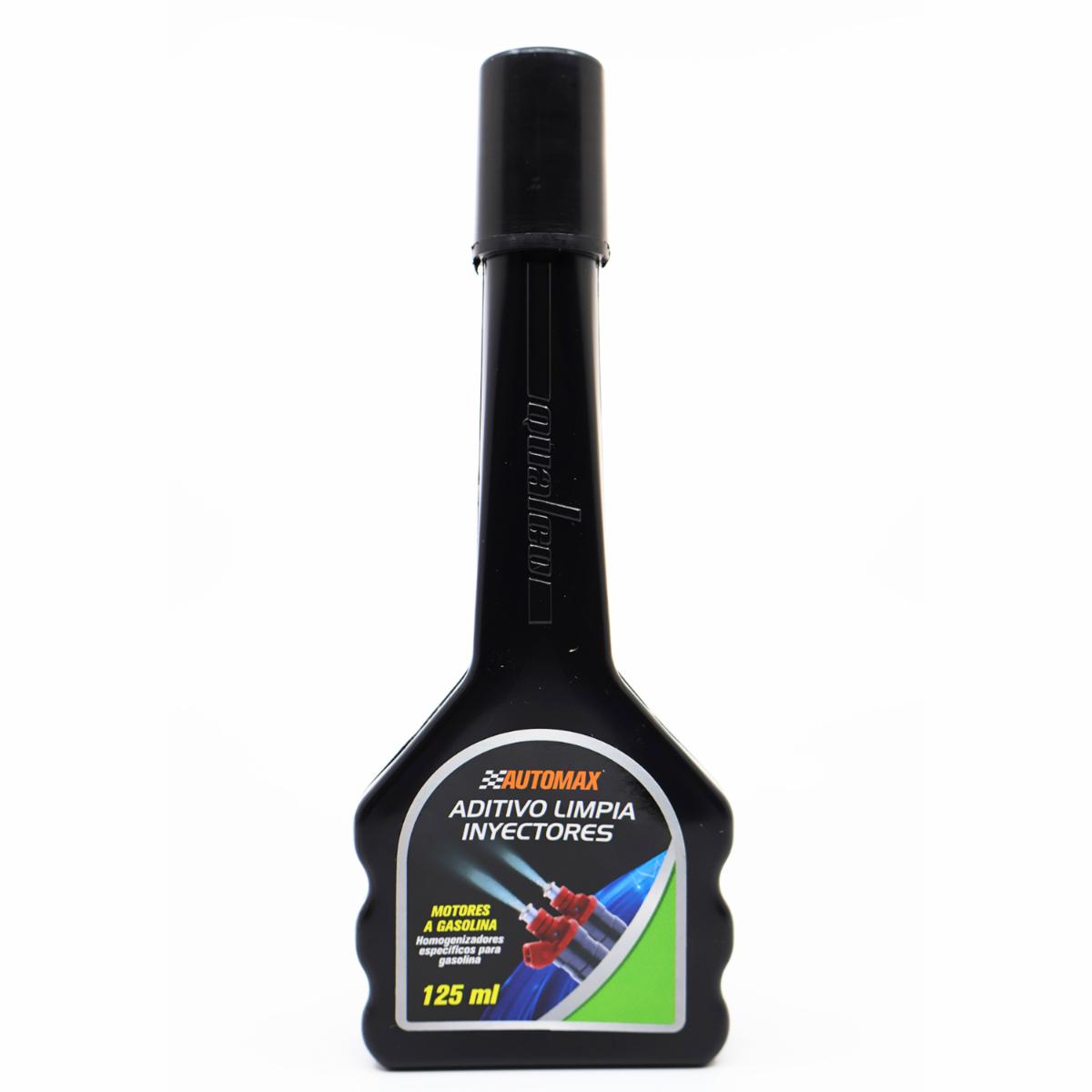 - LIMPIADOR DE INYECTOR DE GASOLINA AUTOMAX: Limpia inyector gasolina Automax Limpiador de inyectores a gasolina concentrado. 125 mL Botella de 125 mL para uso directo al tanque de gasolina. Marca AUTOMAX. Limpiador de inyectores concentrado para realizar una limpieza profunda al sistema de alimentación de combustible y los inyectores. Se recomienda realizar una limpieza profunda de los inyectores cada 5000 Km