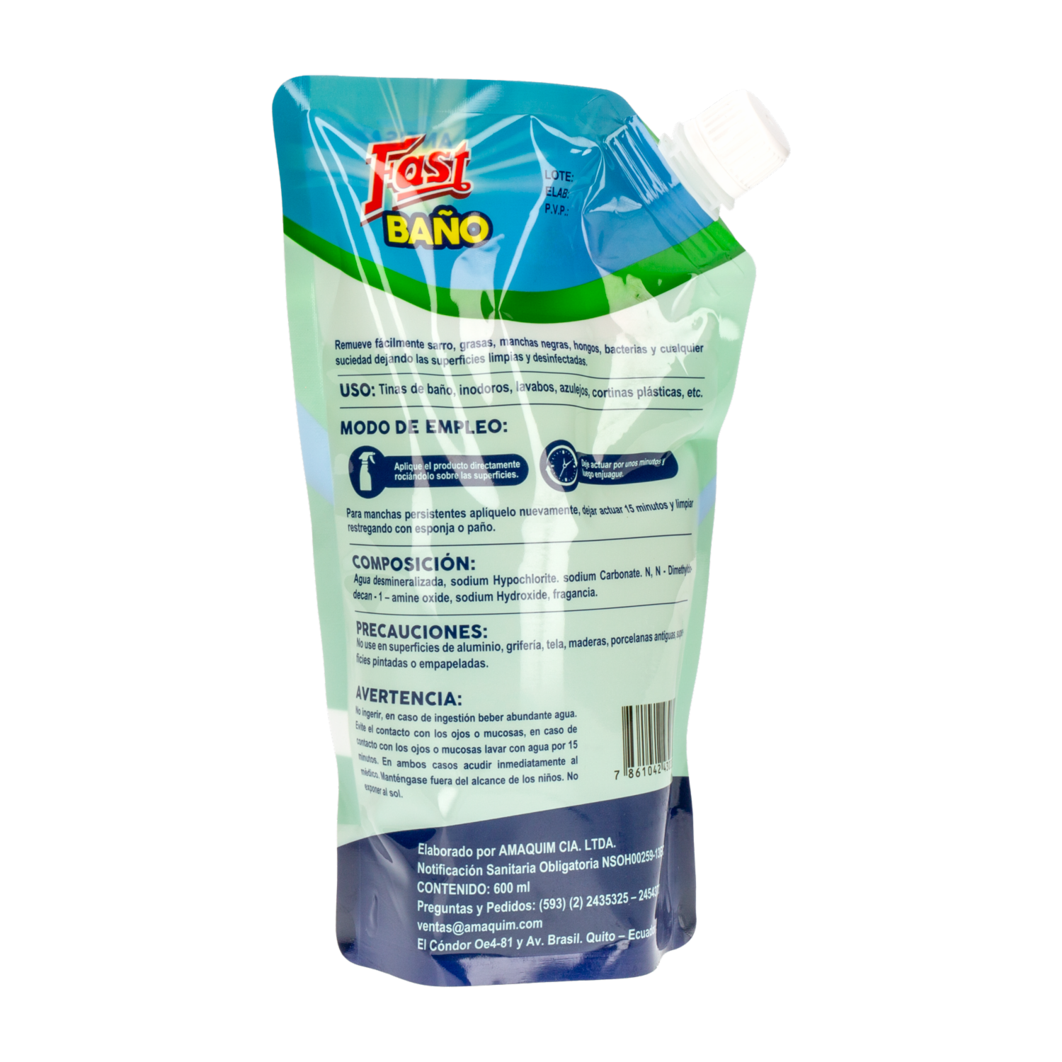 Limpiador Antibacterial Repuesto Con Cloro FAST 600 Ml